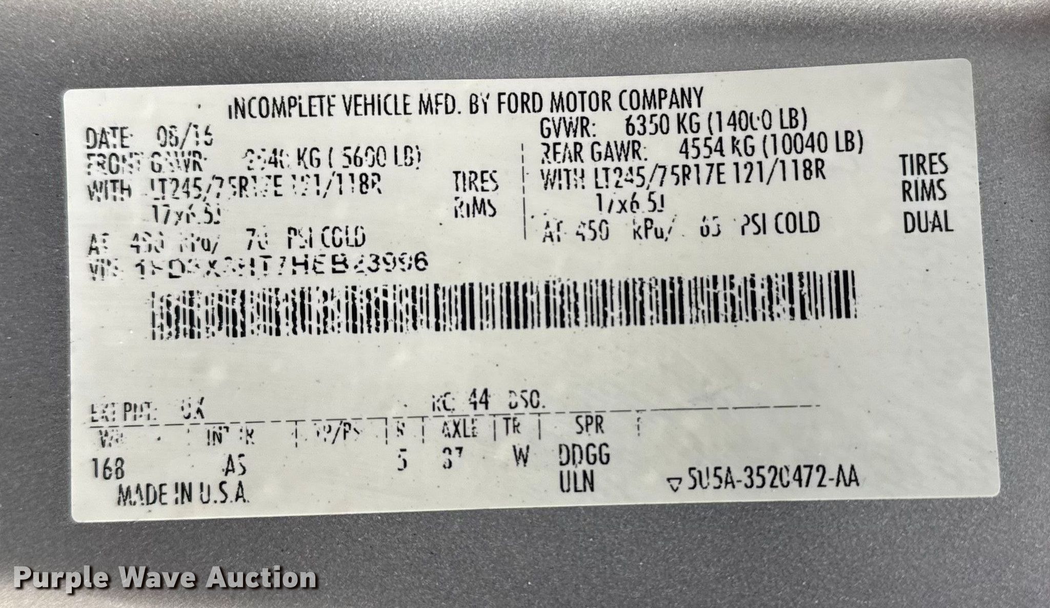 - VIN: 1FD8X3HT7HEB23996