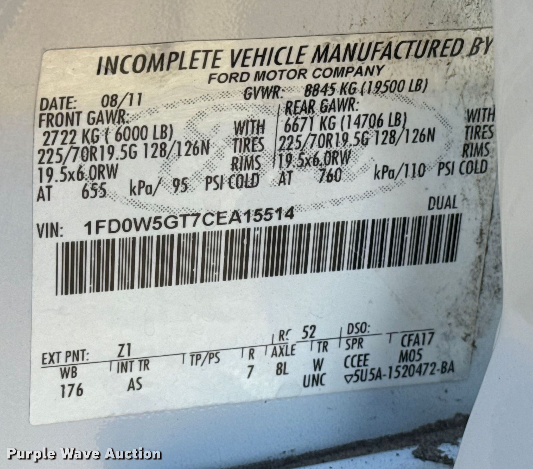 Purple Wave is selling a used Service Truck in Oklahoma. This item is a 2012 Ford F550 utility / service truck with the following: Miles: 117,863 on odometer, VIN: 1FD0W5GT7CEA15514