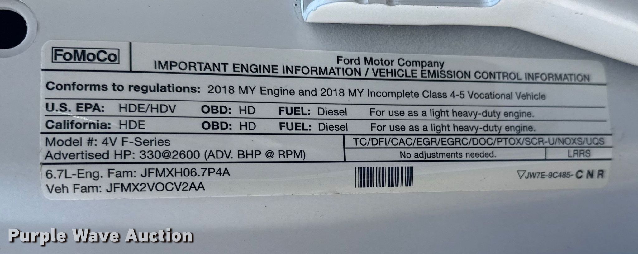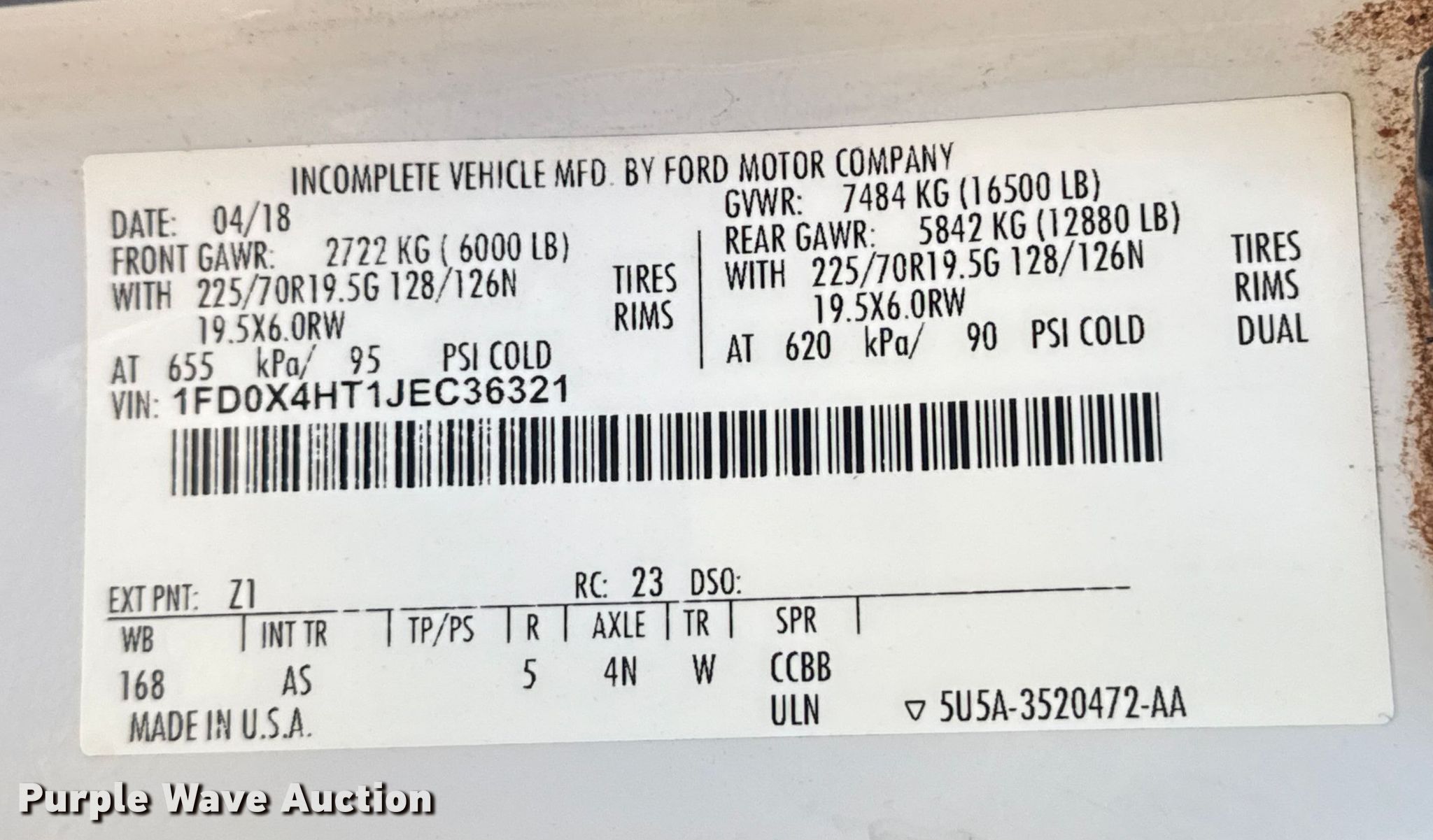 - VIN: 1FD0X4HT1JEC36321
