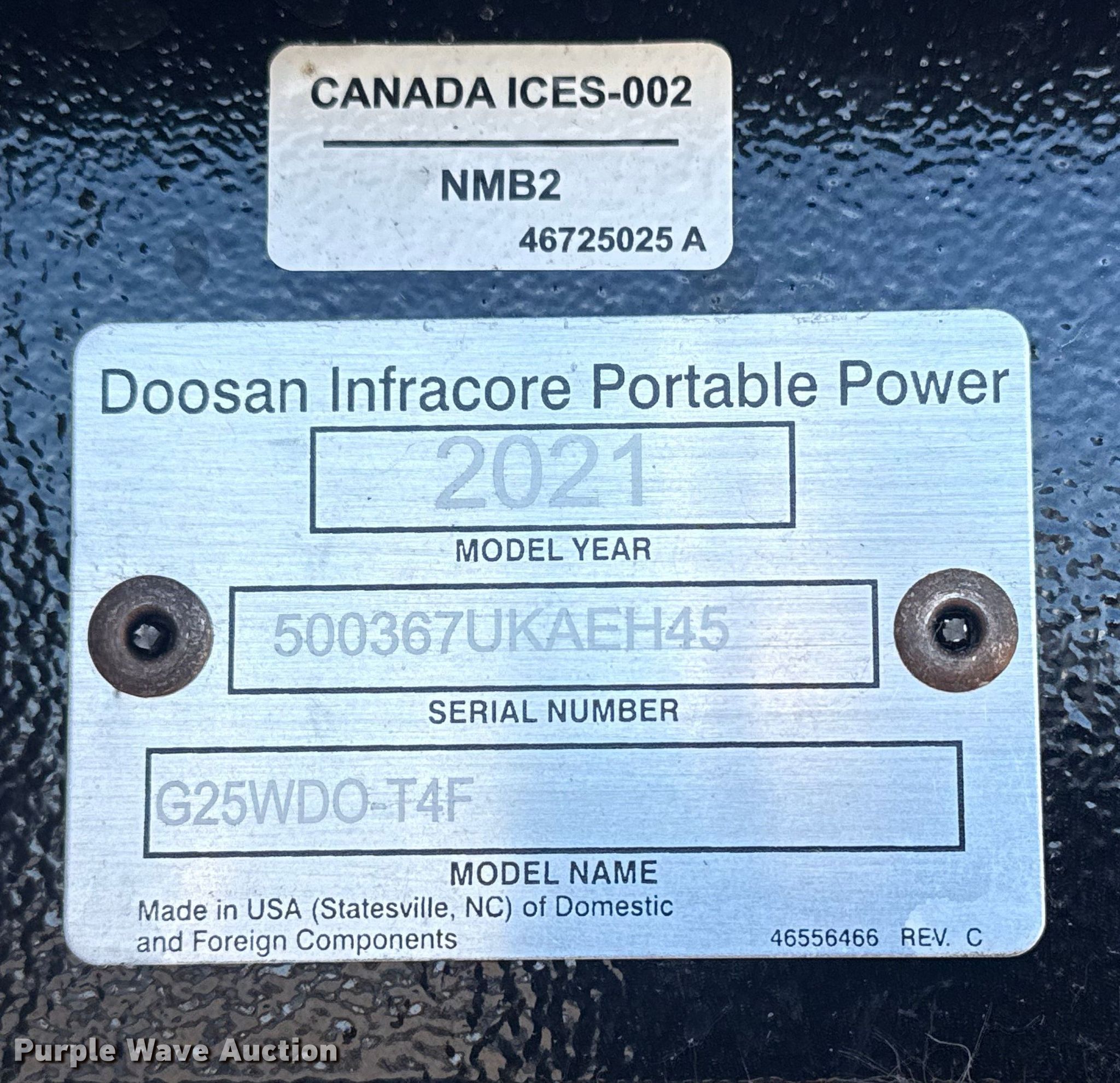 2021 Doosan Portable Power G25WDO-T4F generator | Thursday February 26 Construction Equipment Auction