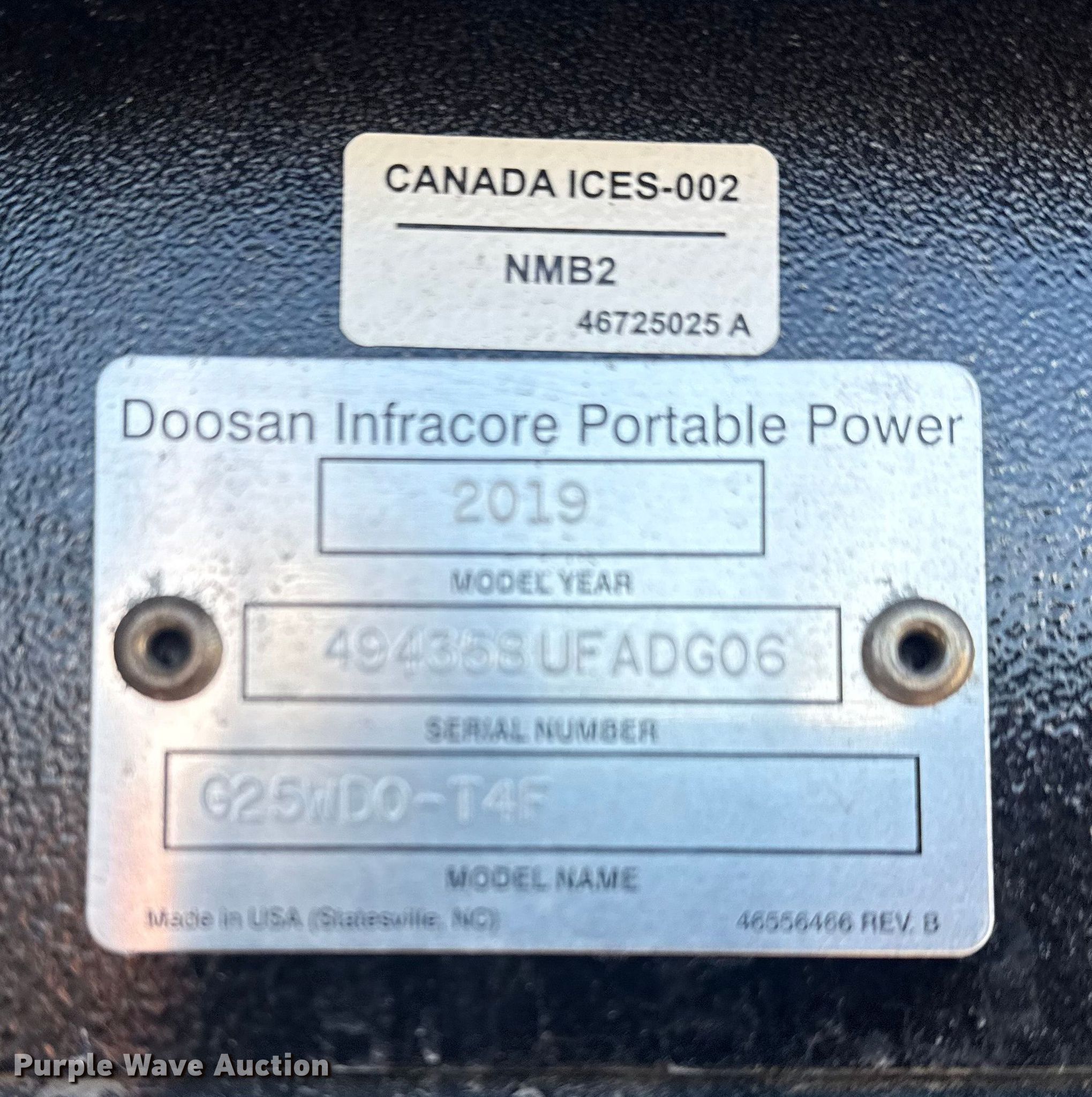 This 2019 Doosan Portable Power G25WDO-T4F generator will sell to the highest bidder regardless of price.