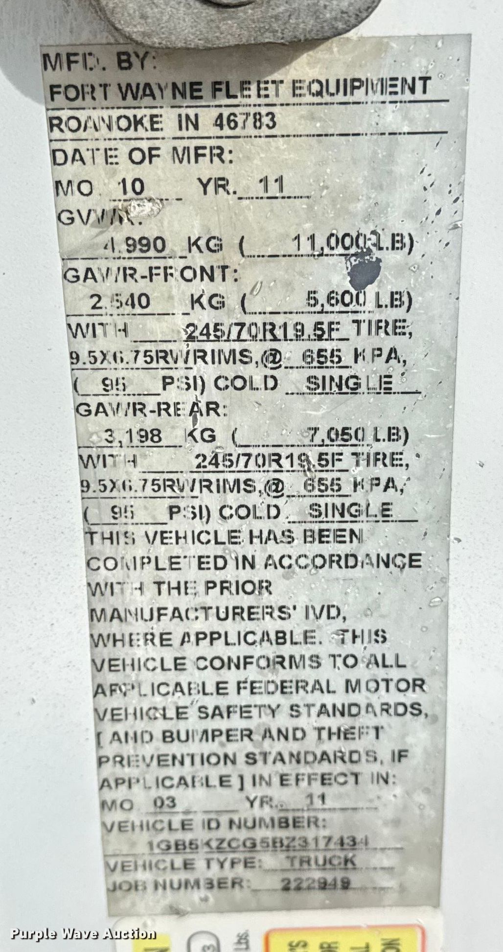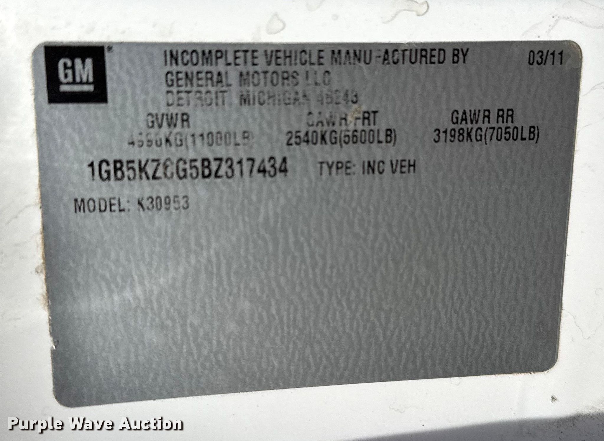 - VIN: 1GB5KZCG5BZ317434