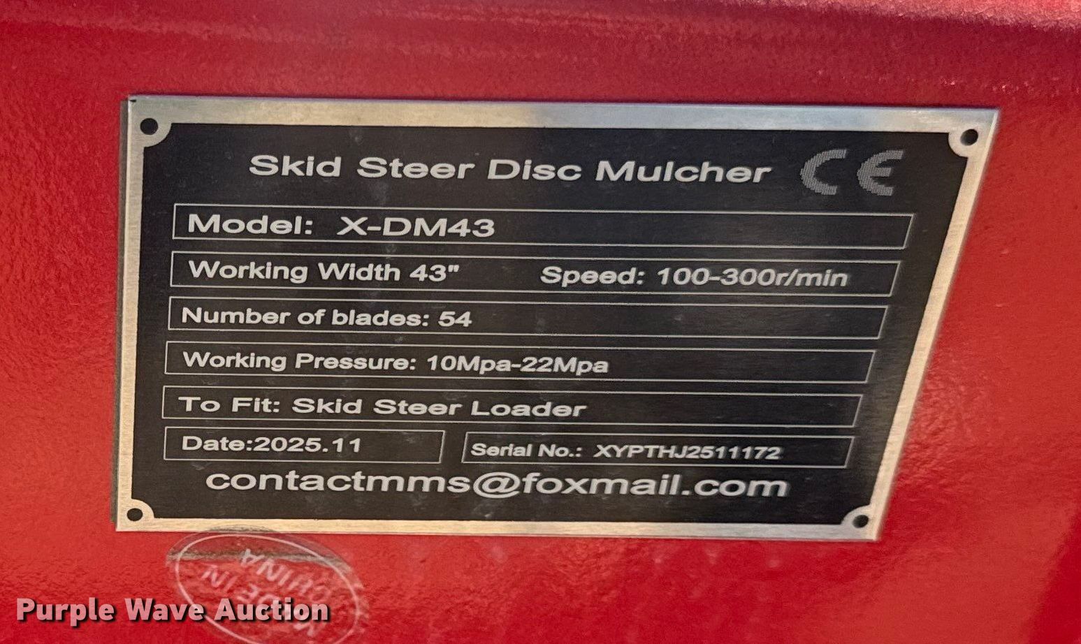 2025 Giyi DM44 skid steer mulcher. Serial: XYPTHJ2511172, Width: 44". Notes Unused. Yc Equipment and Truck Sales LLC. Yates Center, KS 66783