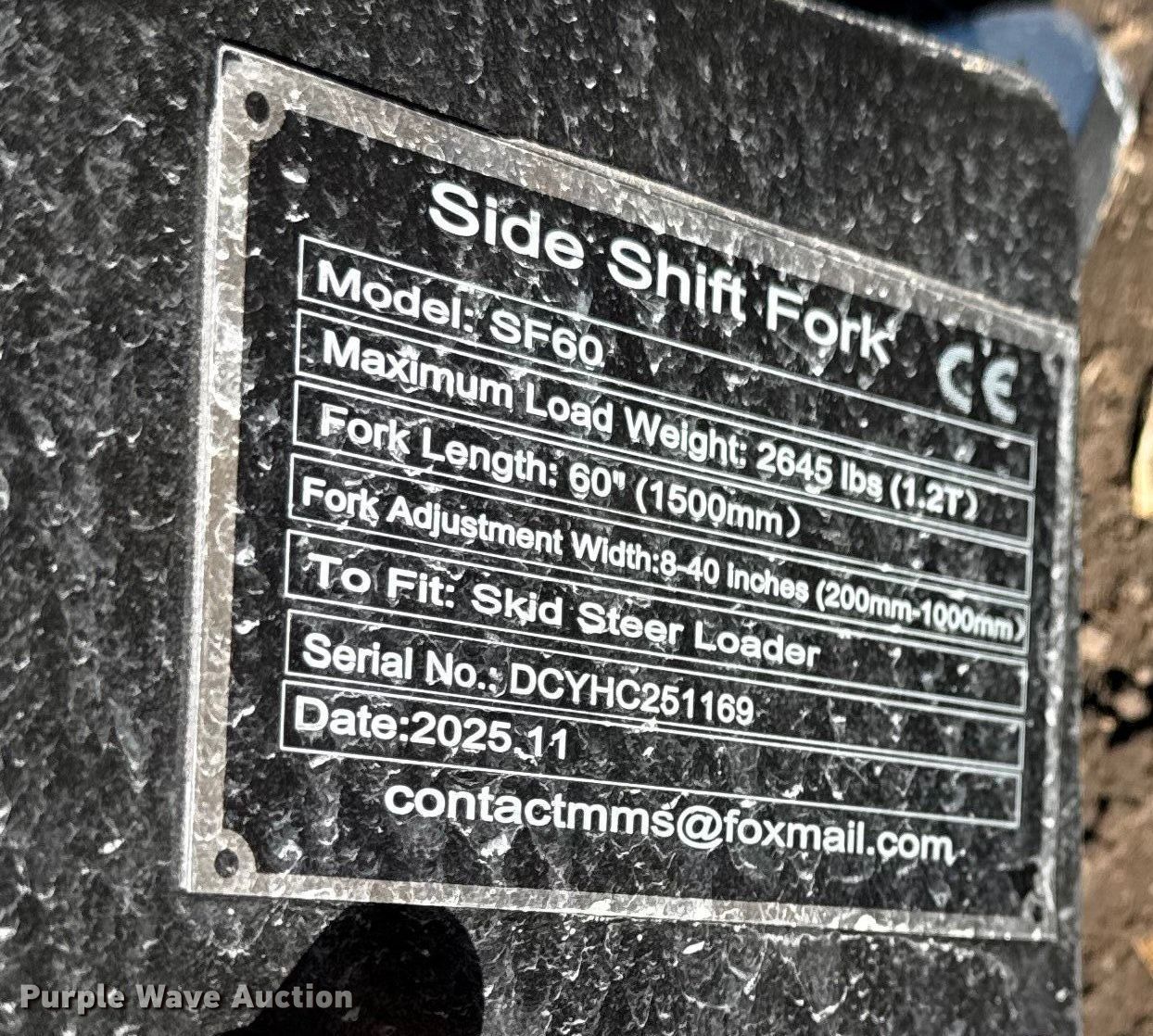 Purple Wave is selling a used Skid Steer Attach. in Kansas. This item is a 2025 Giyi skid steer forks with the following: Serial: DCYHC251169, Length: 60"