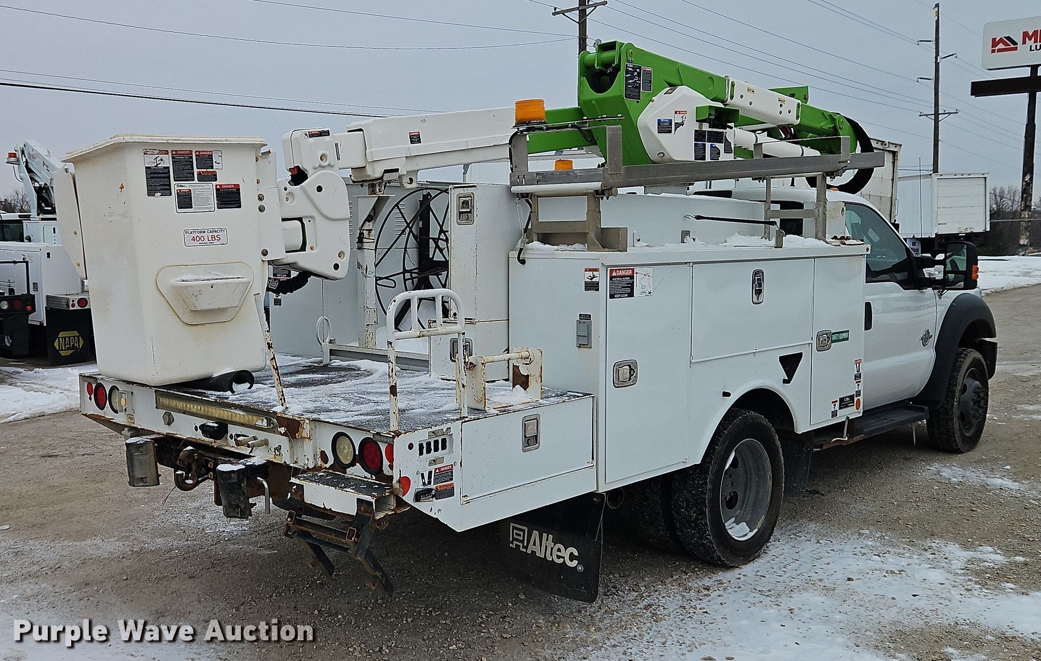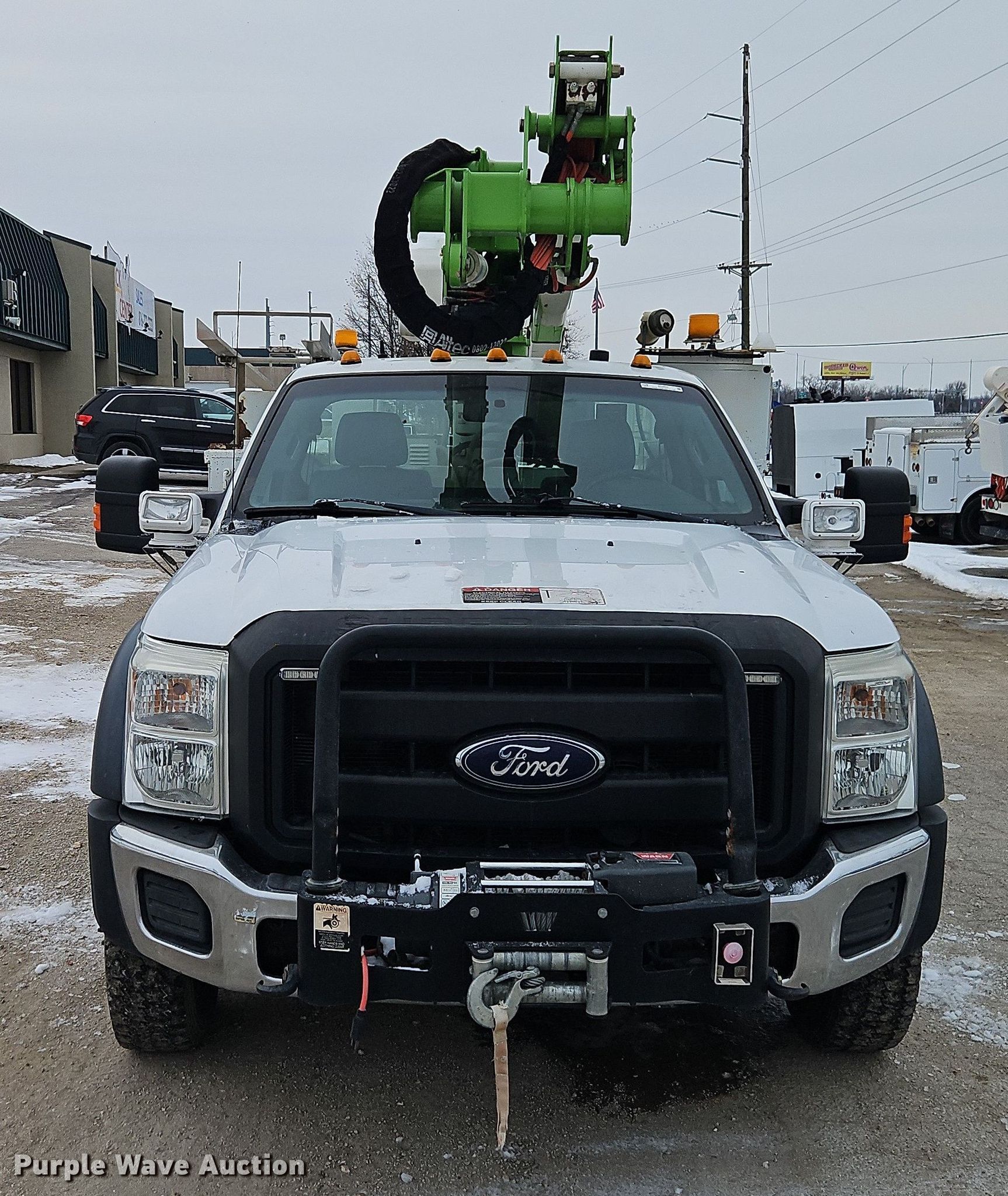 2016 Ford F550 bucket truck. Miles: 141,198 on odometer, Hours: 8,499 on meter, VIN: 1FDUF5HT9GEC34545. Engine Ford, Displacement: 6.7L, Cylinders: 8, Fuel type: Diesel. Transmission Automatic. Chassis Four wheel drive, Axles: Single, Suspension: Spring, Brakes: Hydraulic, PTO, Wet kit, GVWR: 19,500 lbs, Wheelbase: 141". Interior AC, Heat, Heated mirrors, Power windows, Power locks, Cruise control, Auxiliary controls, Brake controller. Features Bed Utility bed, Altec, Serial: 3740222083, Length: 13', Width: 96", Boom 2016 Altec AT40G, Serial: 0916RY1993, Boom length: 40', Maximum lift capacity: 400 lbs, Maximum lift height: 40', Boom type: Articulating, Insulated, Telescopic, Man basket, Boom controls Lower, Basket.. Tires Size: 225/70R19.5. Notes Warn 16.5ti winch. Kansas title. Seller is a Missouri licensed motor vehicle dealer. The buyer may be required to pay sales tax and/or registration fees to the dealer prior to taking possession. Buyers may be required to provide identification to the licensed dealer to comply with state laws. Title will be assigned and distributed by the dealer. Please contact the seller for distribution questions. Title distribution may be delayed up to 30 days from verification of funds. Interstate 49 Truck Center. Grandview, MO 64030
