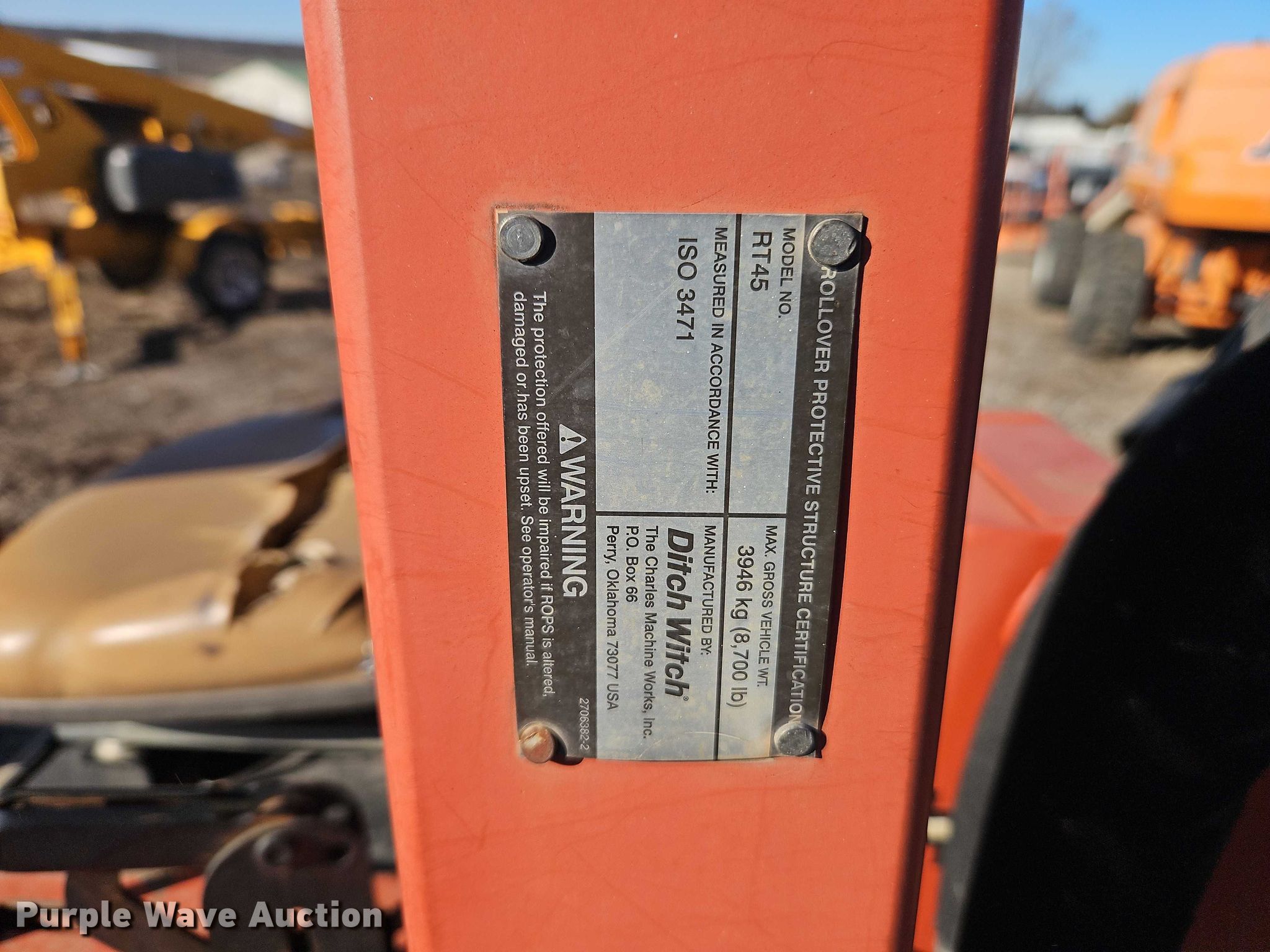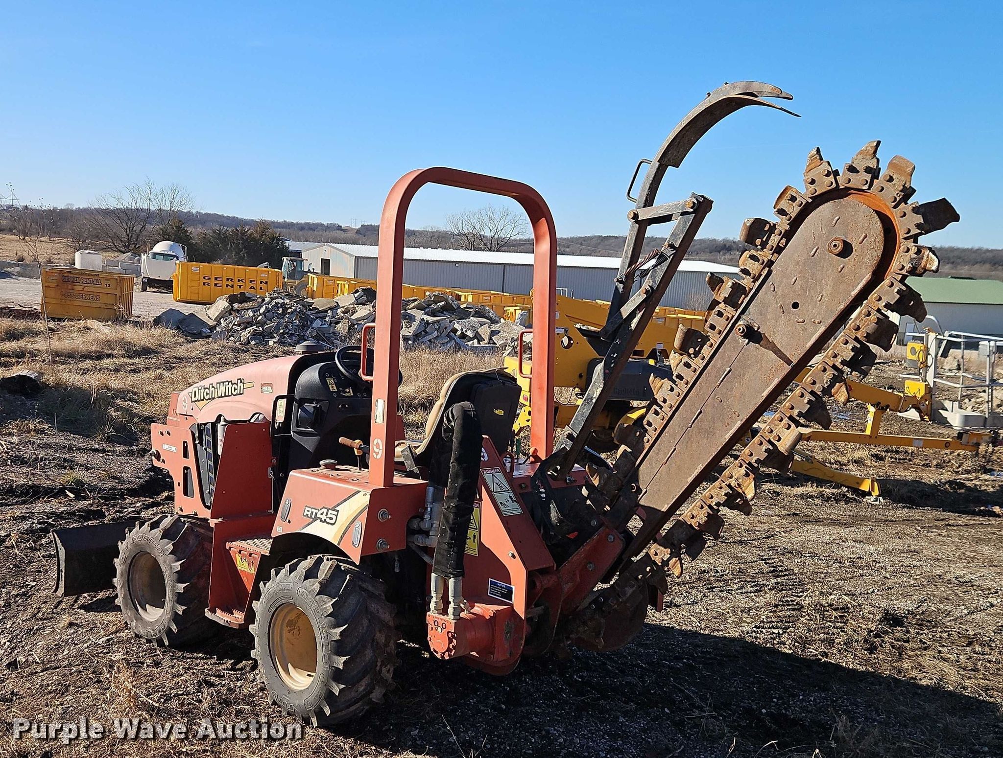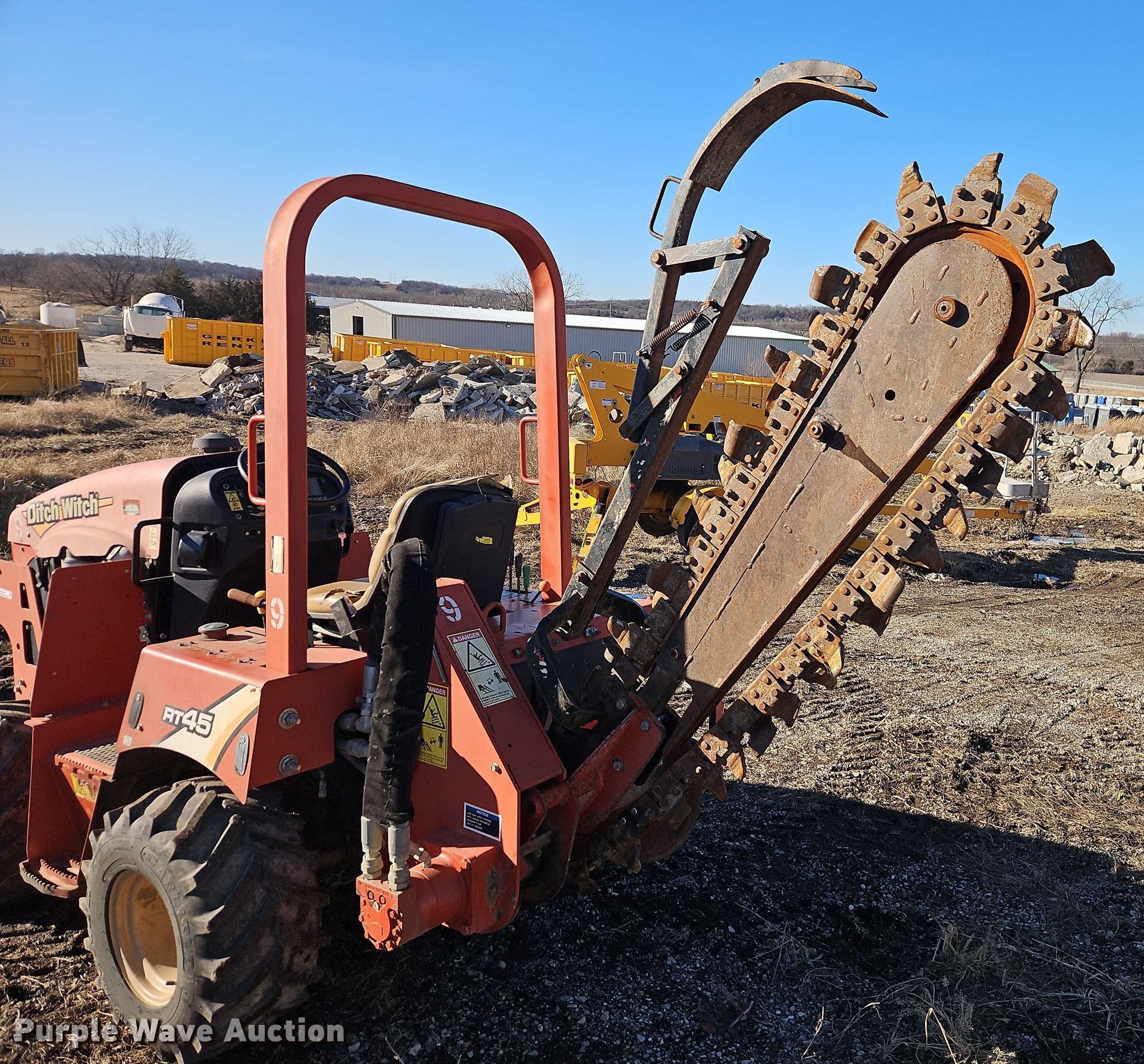 Purple Wave is selling a used Trencher or Rock Saw in Kansas. This item is a 2016 Ditch Witch RT45 trencher with the following: Hours: 928 on meter, Serial: CMWRT45XVG0003177