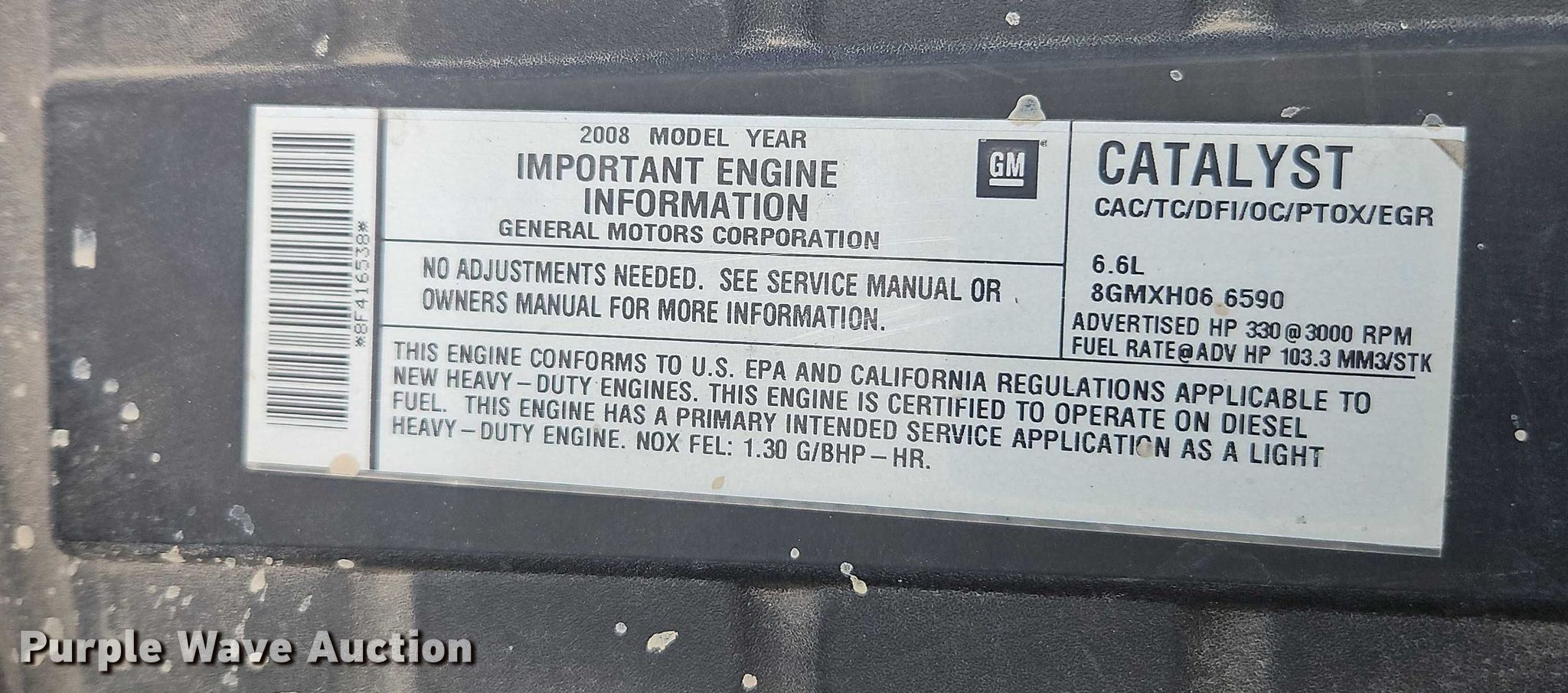 2008 Chevrolet C4500 flatbed truck. Miles: 55,560 on odometer, VIN: 1GBE4E1968F416538, Unit #: VH070. Engine Displacement: 6.6L, Cylinders: 8, Fuel type: Diesel. Transmission Automatic. Chassis Axles: Single, Suspension: Spring, Brakes: Hydraulic, GVWR: 17,500 lbs. Interior AC, Heat, Power windows, Power locks, Cruise control, Brake controller. Features Bed Flatbed, Length: 12', Width: 95". Tires Size: 245/70R19.5. Notes Dash warning indicator: Check engine, Jump start required during on-site data collection. Missouri title. Title distribution may be delayed up to 14 days from verification of funds. Magnum Boring LLC. Kansas City, MO 64131