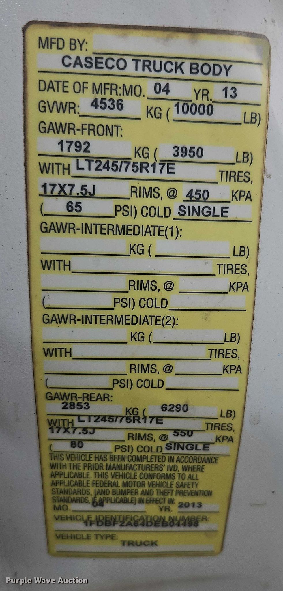 - VIN: 1FDBF2A64DEB04498
