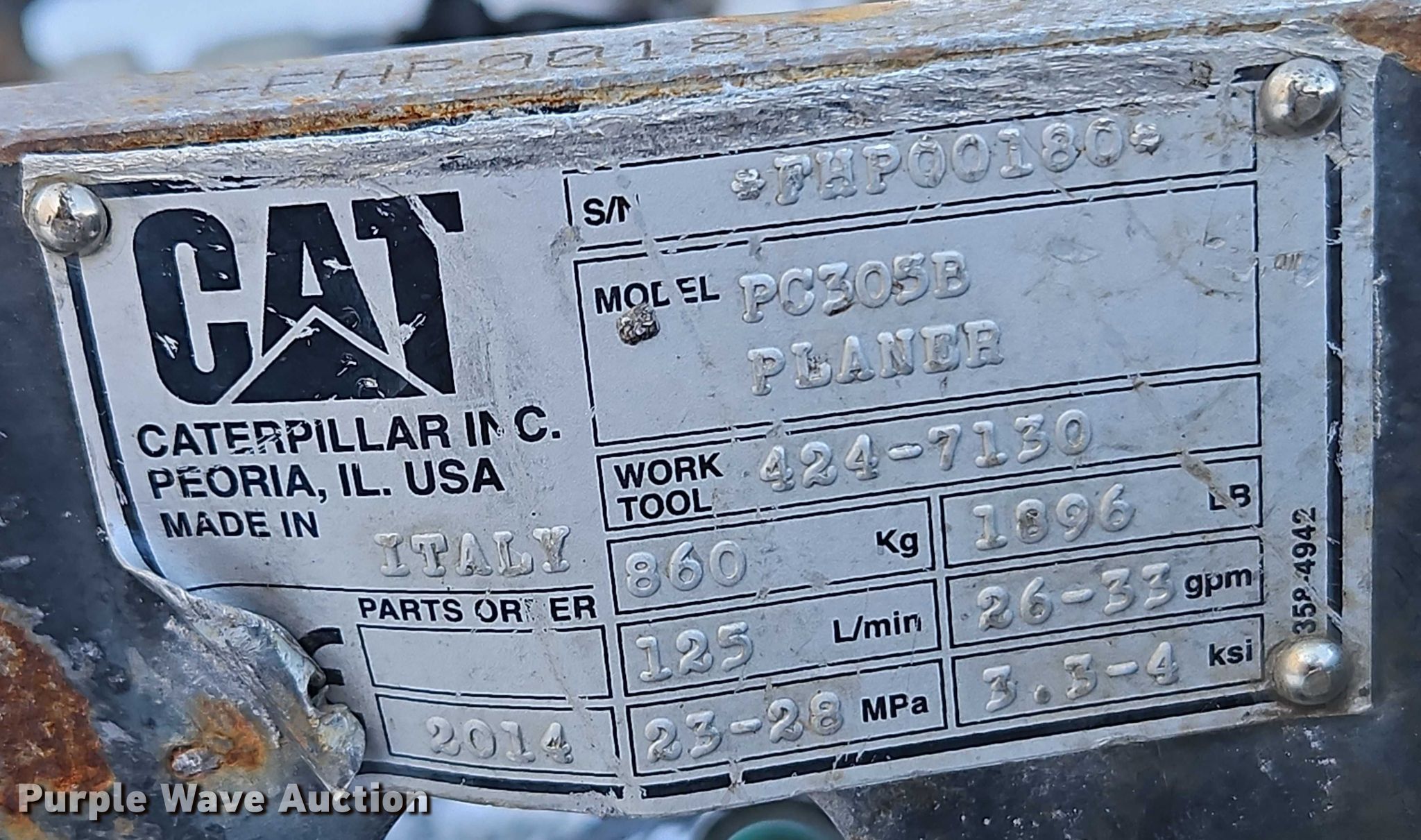 Purple Wave is selling a used Skid Steer Attach. in Kansas. This item is a Caterpillar PC305B skid steer cold planer with the following: Serial: FHP00180, Width: 73", Length: 45"