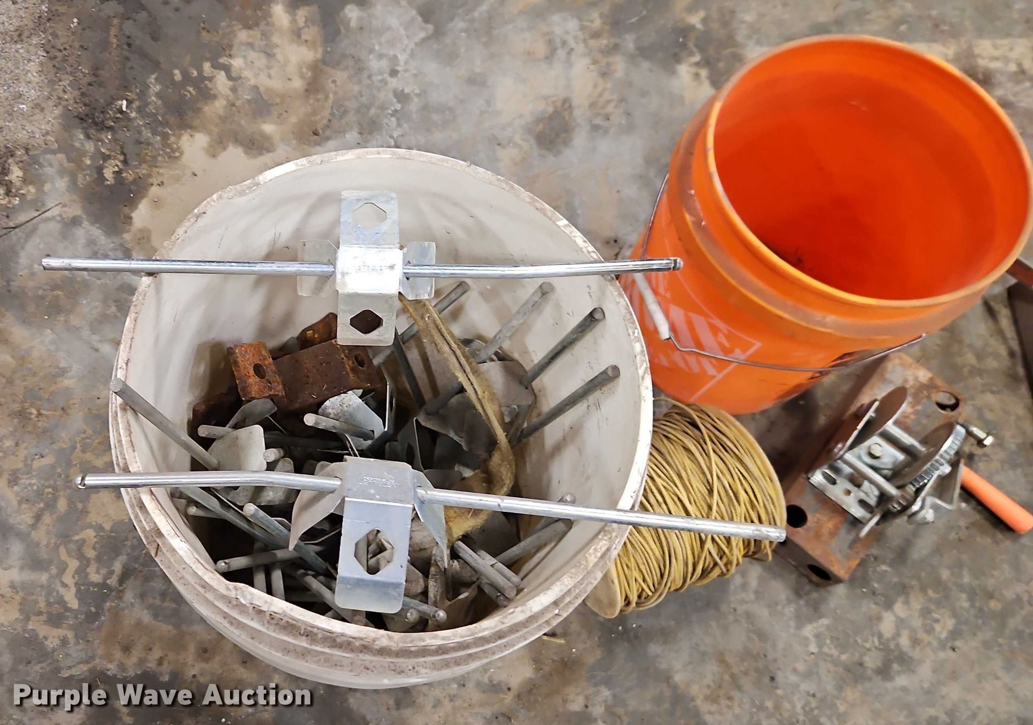 Purple Wave is selling a used Paving Sply. or Attach. in Missouri. This item is a Curb machine string line with the following: Pins, Line rod, Clamps, Line winch, Line, Pins