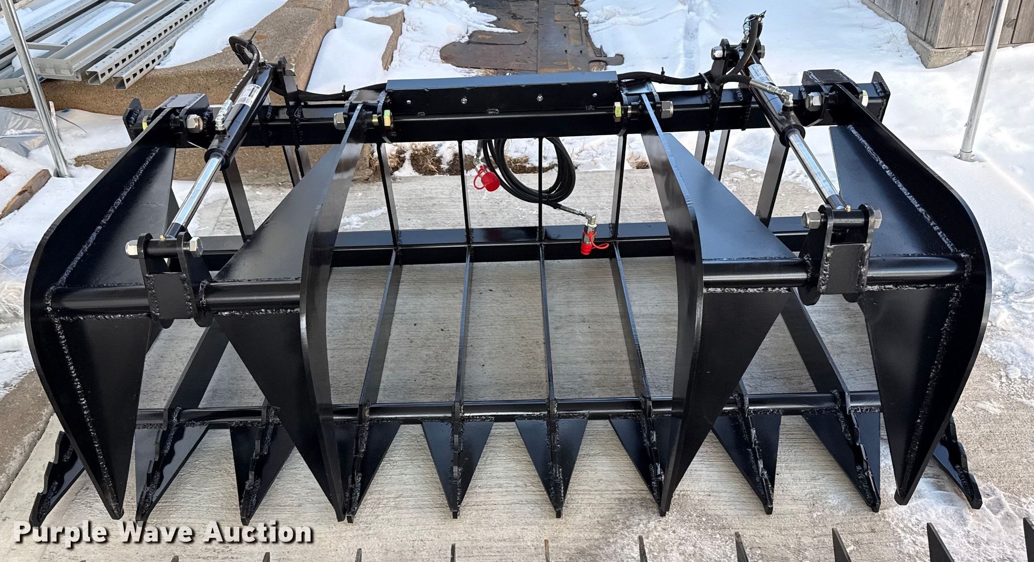 This 72" W skid steer grapple bucket will sell to the highest bidder regardless of price.