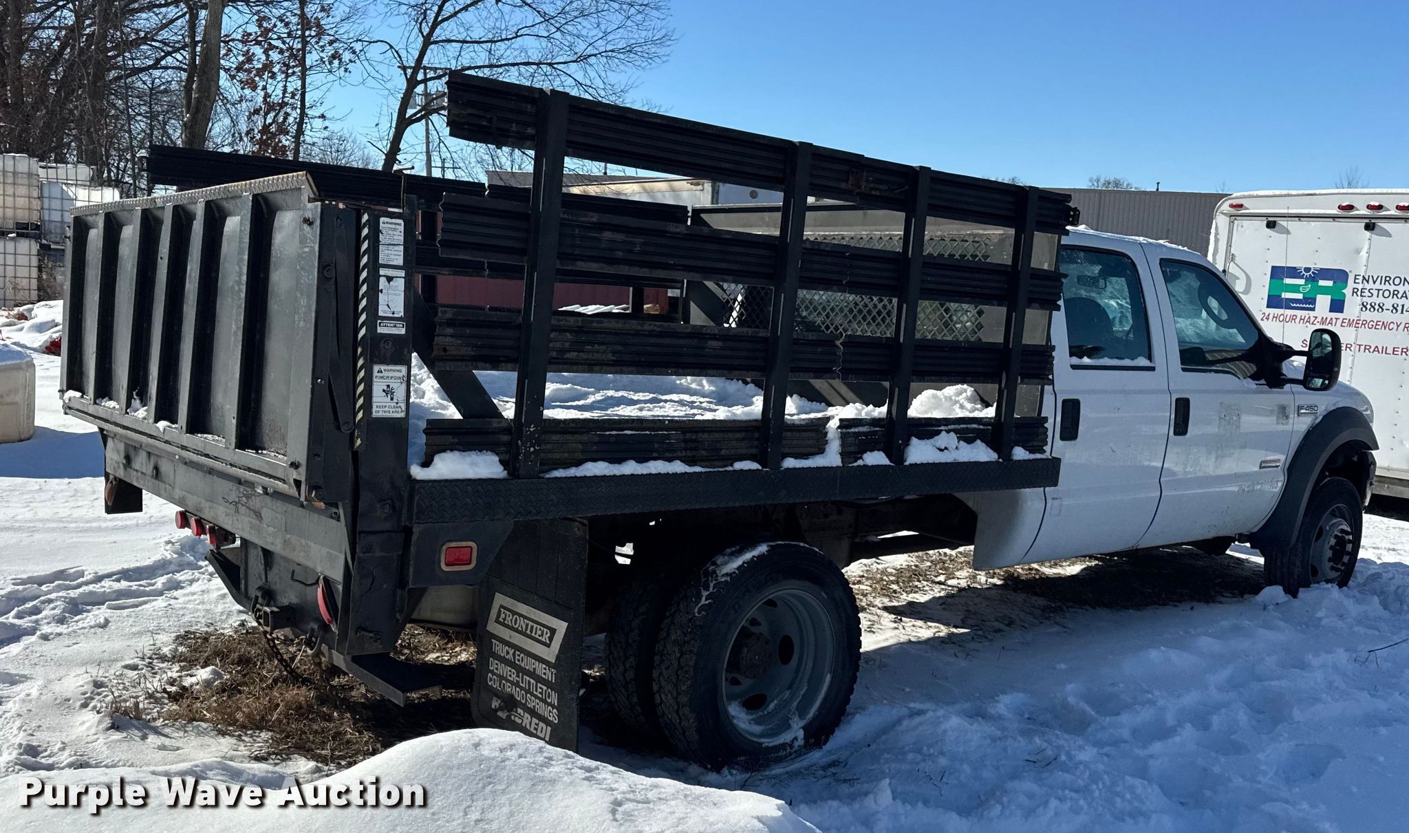 2005 Ford F450 Super Duty XL Crew Cab flatbed pickup truck. Miles: 247,717 on odometer, VIN: 1FDXW47P25EA35023. Engine Displacement: 6.0L, Cylinders: 8, Fuel type: Diesel. Transmission Automatic. Chassis Four wheel drive. Interior AC, Heat, Cruise control, Brake controller. Features Bed Flatbed, Knapheide PG 93b, Length: 9' 3", Width: 95". Tires Size: 225/70R19.5. Notes Unit must be towed or hauled, Non-operational unit. Missouri title. Title distribution may be delayed up to 14 days from verification of funds. Environmental Restoration, LLC. Merrillville, IN 46410