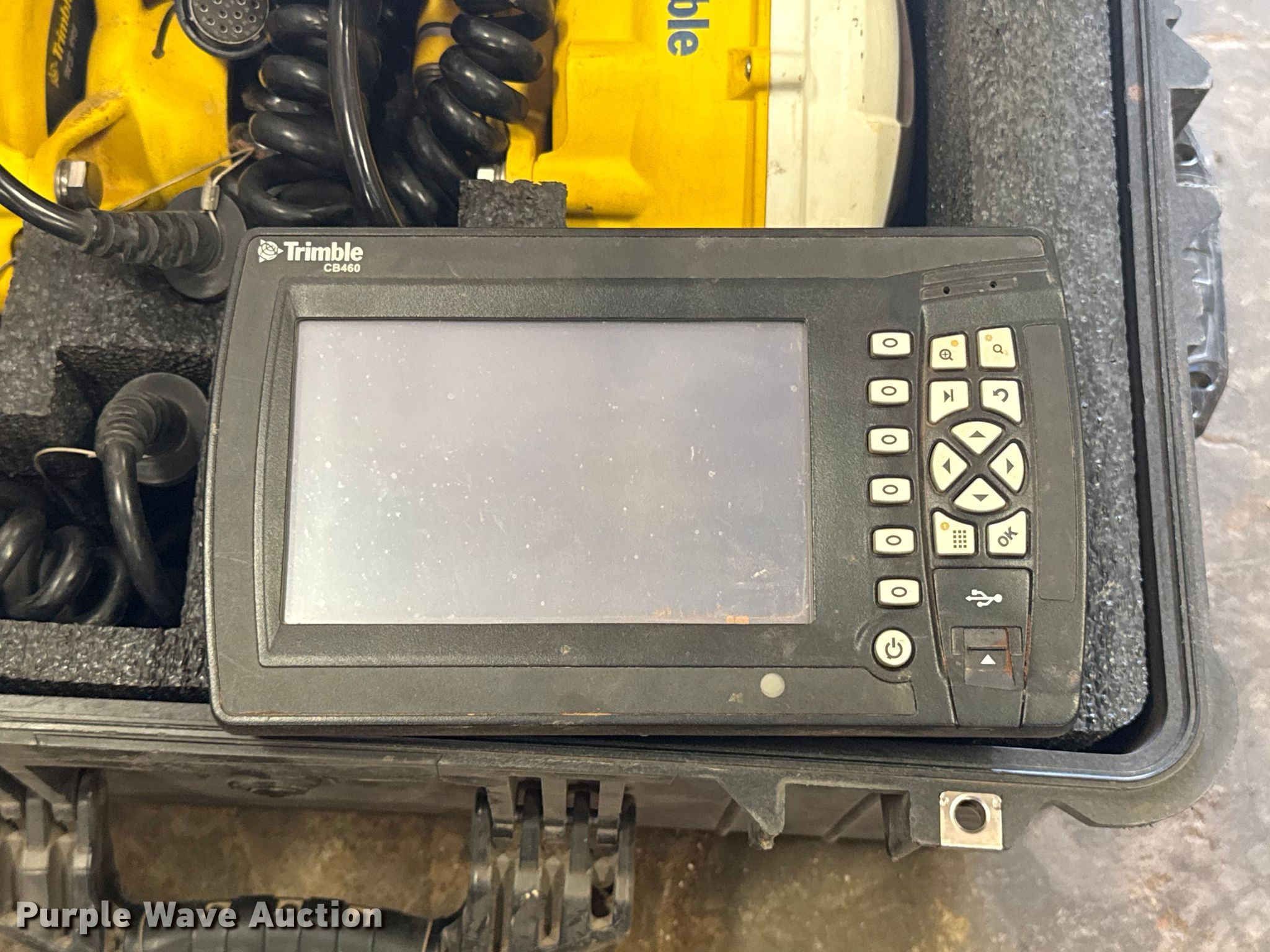 Purple Wave is selling a used Motor Grader Attach. in Oklahoma. This item is a Trimble grade control system with the following: Trimble TSC3 data collector, Trimble Zypher Model 2 antenna, Wire harness, Trimble CB460 control box
