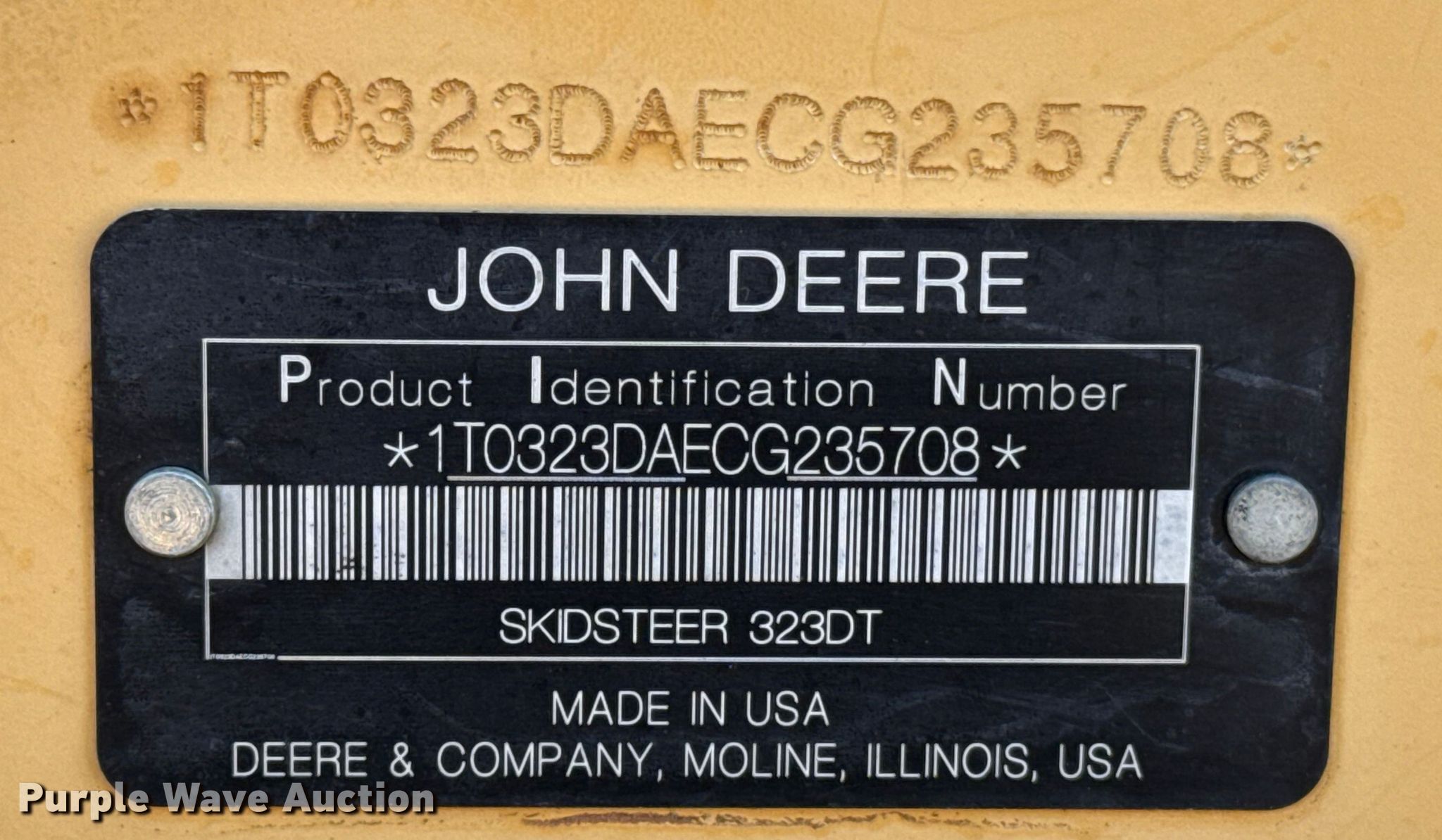 Purple Wave is selling a used Tracked Skid Steer Loader in Oklahoma. This item is a 2013 John Deere 323DT tracked skid steer loader with the following: Hours: 2,662 on meter, Serial: 1T0323DAECG235708
