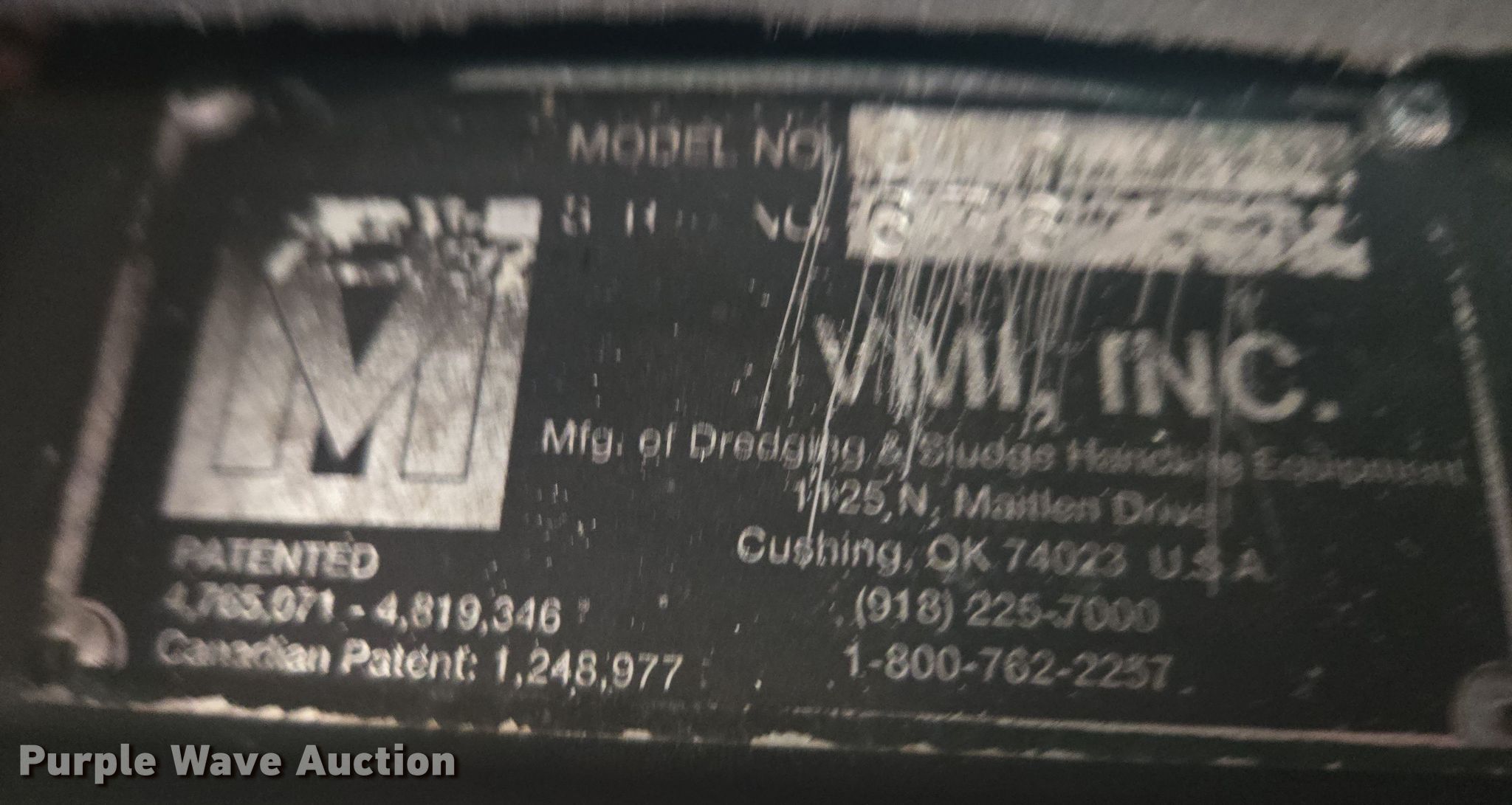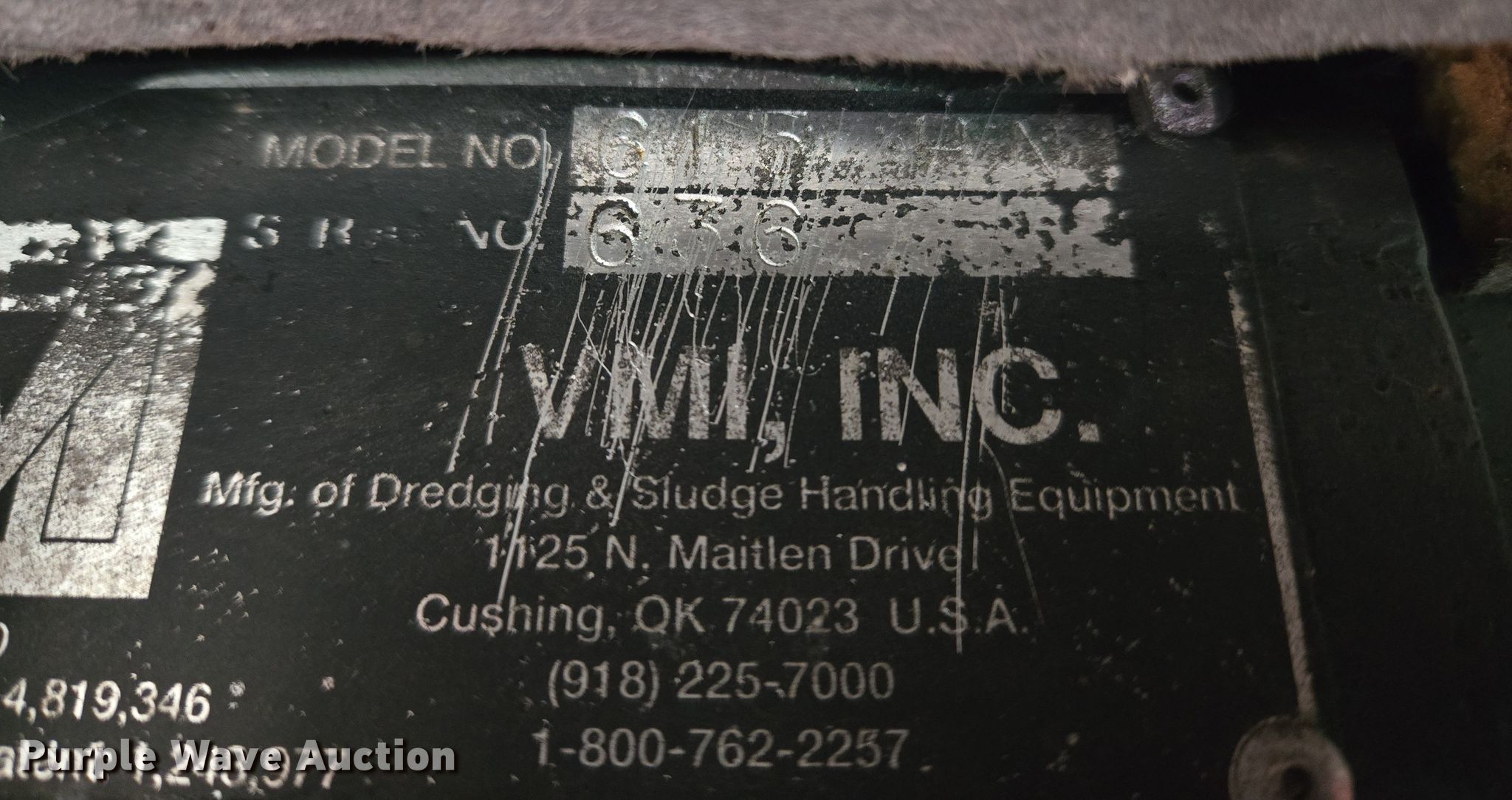 Purple Wave is selling a used Other Industrial or Business in Oklahoma. This item is a VMI INC. 615 dredge with the following: Hours: 896 on meter, Serial: 636