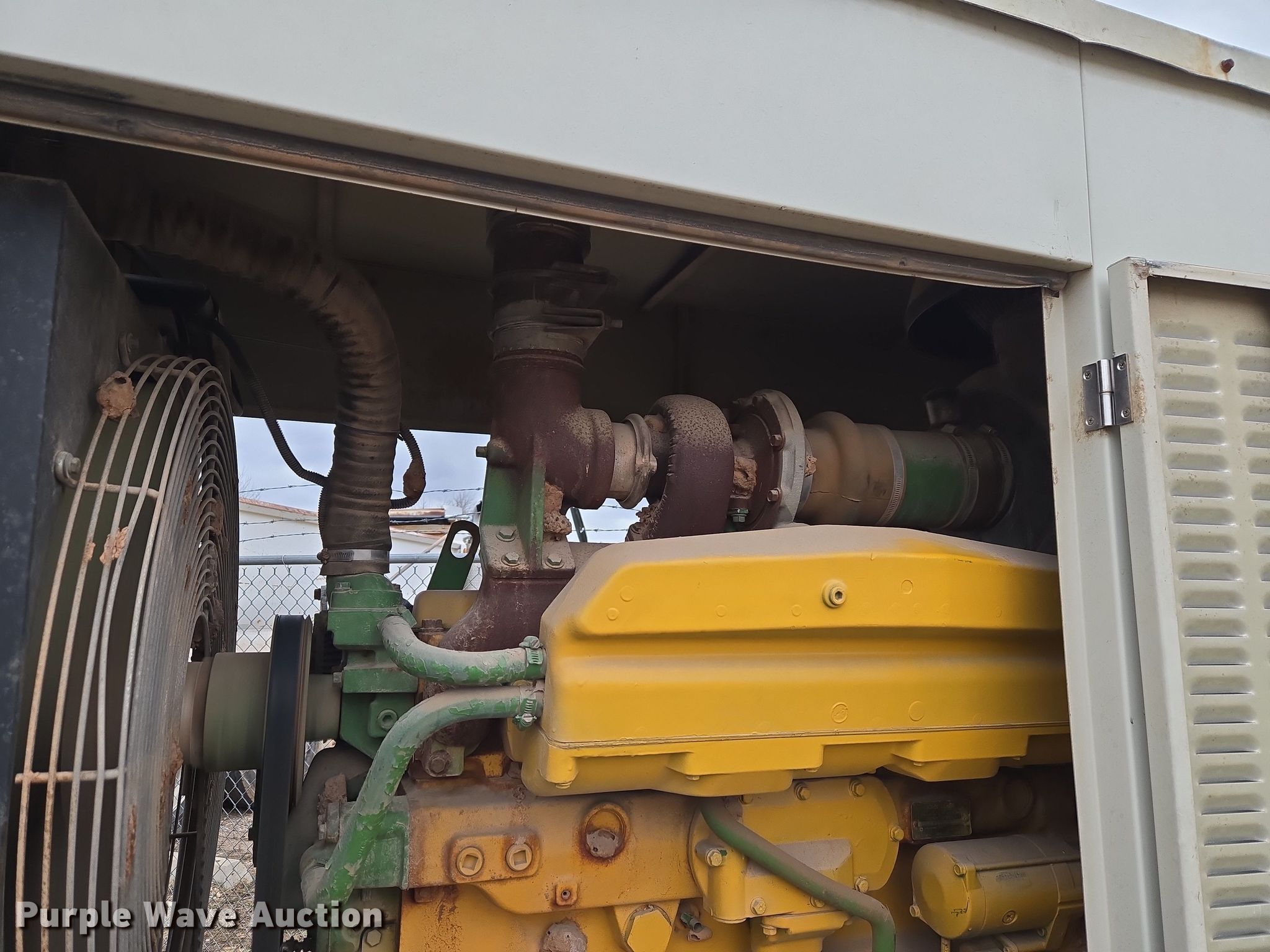 2006 Pivot Power generator. Hours: 8,613 on meter. Engine John Deere SE60865, Serial: SE6081H019084, Cylinders: 6, Fuel type: Diesel. Features Generator Phase: Three, Electric start, Fuel tank, Skid mounted. Notes Jump start required during on-site data collection, Fuel tank disconnected, Unknown operating condition. CP Materials. Mustang, OK 73064