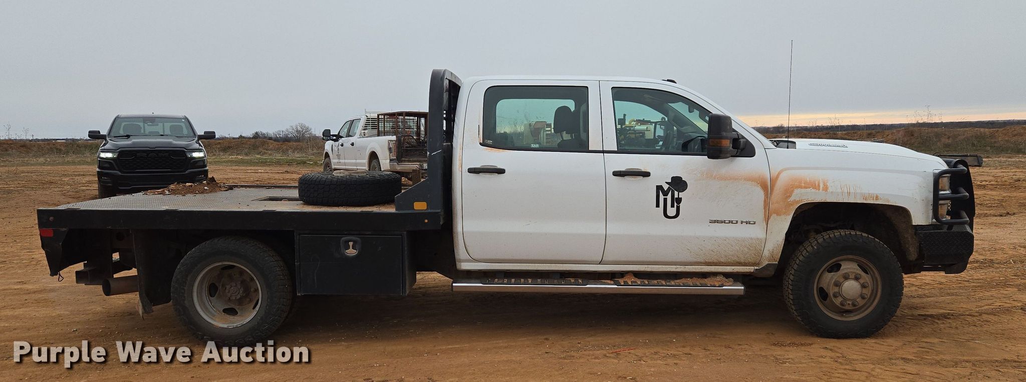 This 2017 Chevrolet Silverado 3500HD Crew Cab flatbed truck will sell to the highest bidder regardless of price.