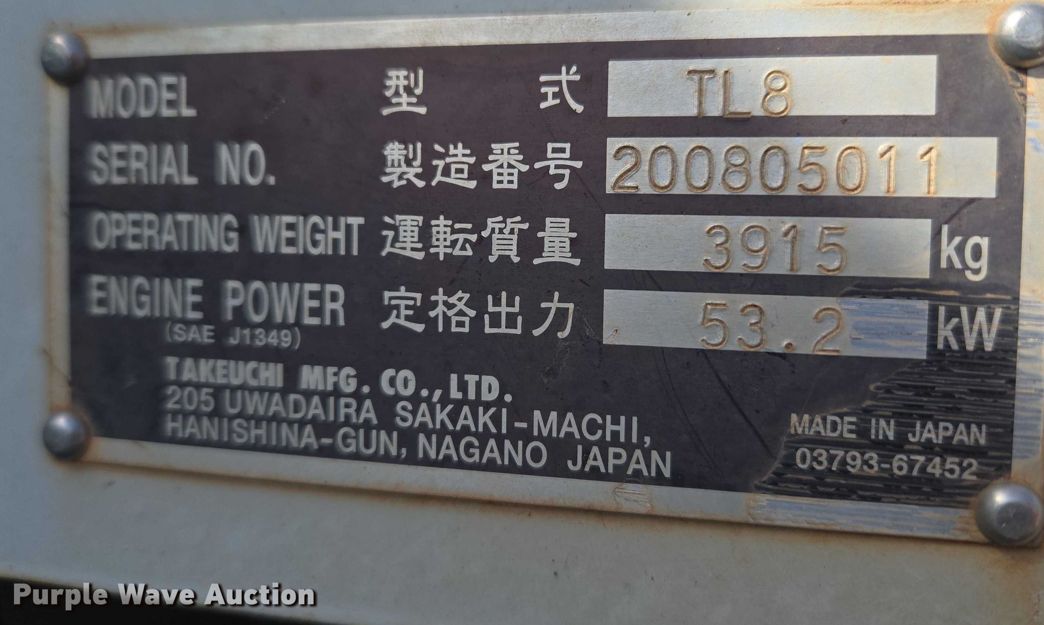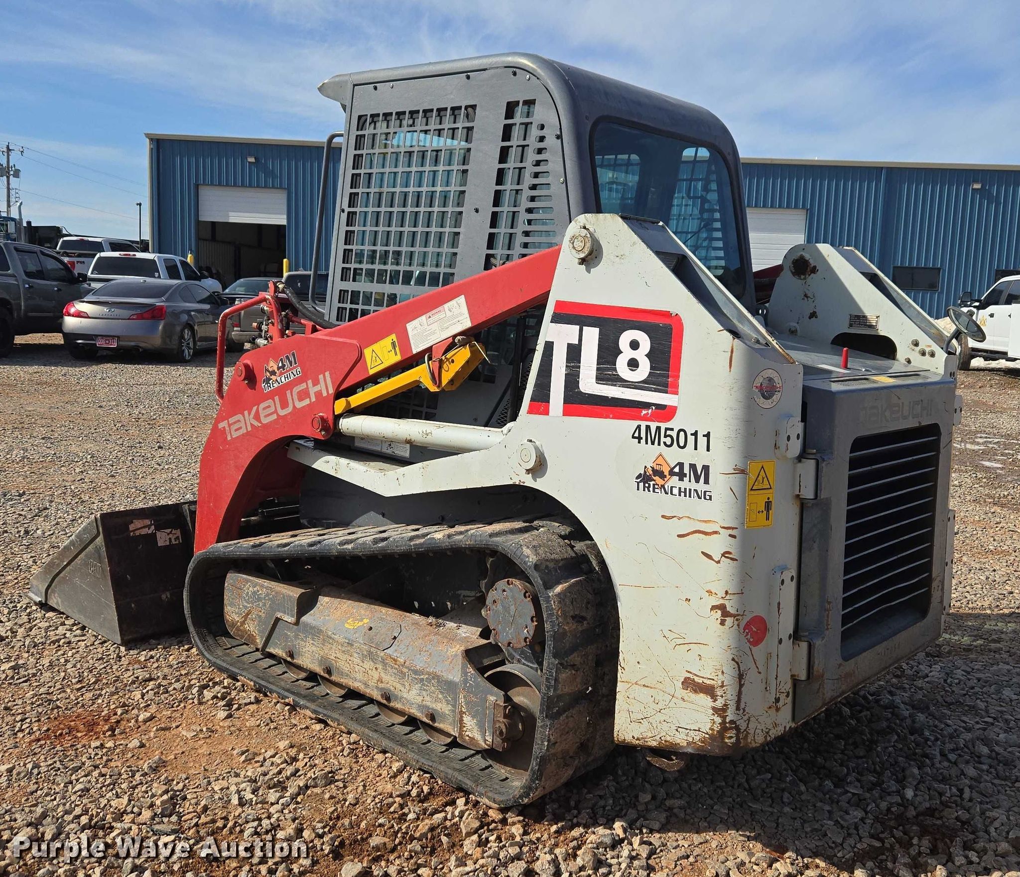 Purple Wave is selling a used Tracked Skid Steer Loader in Oklahoma. This item is a 2017 Takeuchi TL8 tracked skid steer loader with the following: Hours: 2,259 on meter, Serial: 200805011