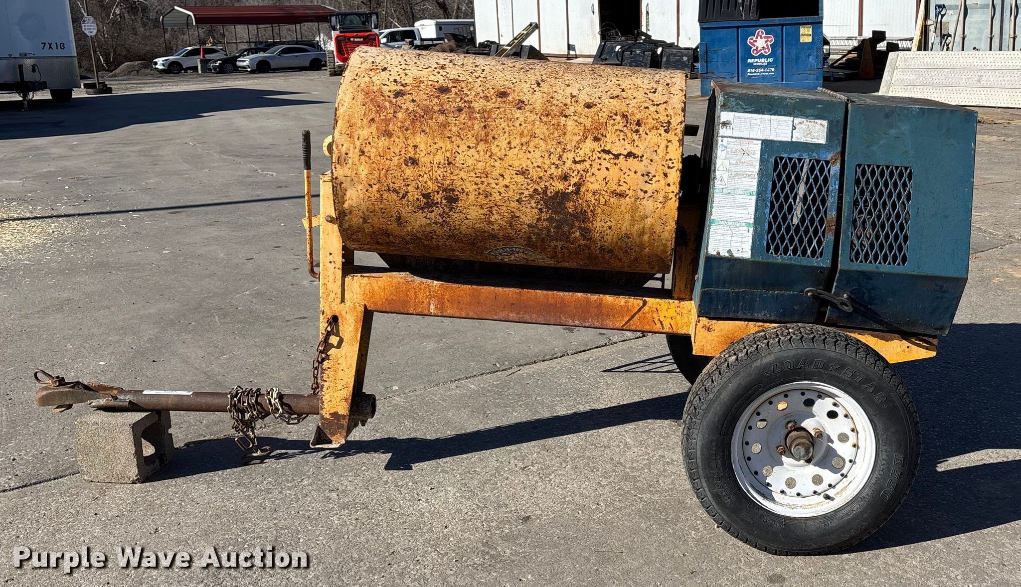 Purple Wave is selling a used Concrete Equip. or Acces. in Missouri. This item is a Concrete mixer with the following: Overall, Length: 9', Width: 4'