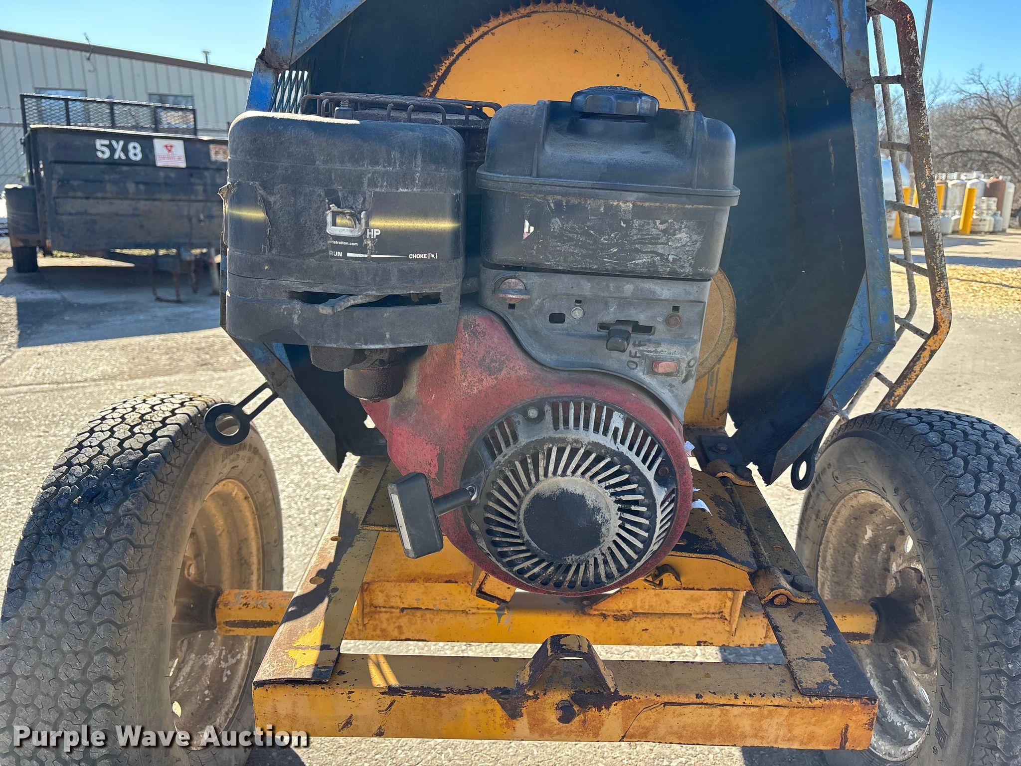 Concrete mixer. Dimensions. Overall Length: 9', Width: 4'. Engine Cylinders: 2, Fuel type: Gas. Tires Size: 175/80D13. Notes Unknown operating condition. This is worksite support equipment and will not come with a title. Transfer of ownership documentation will be a bill of sale. Glad Rents, Inc.. Kansas City, MO 64118