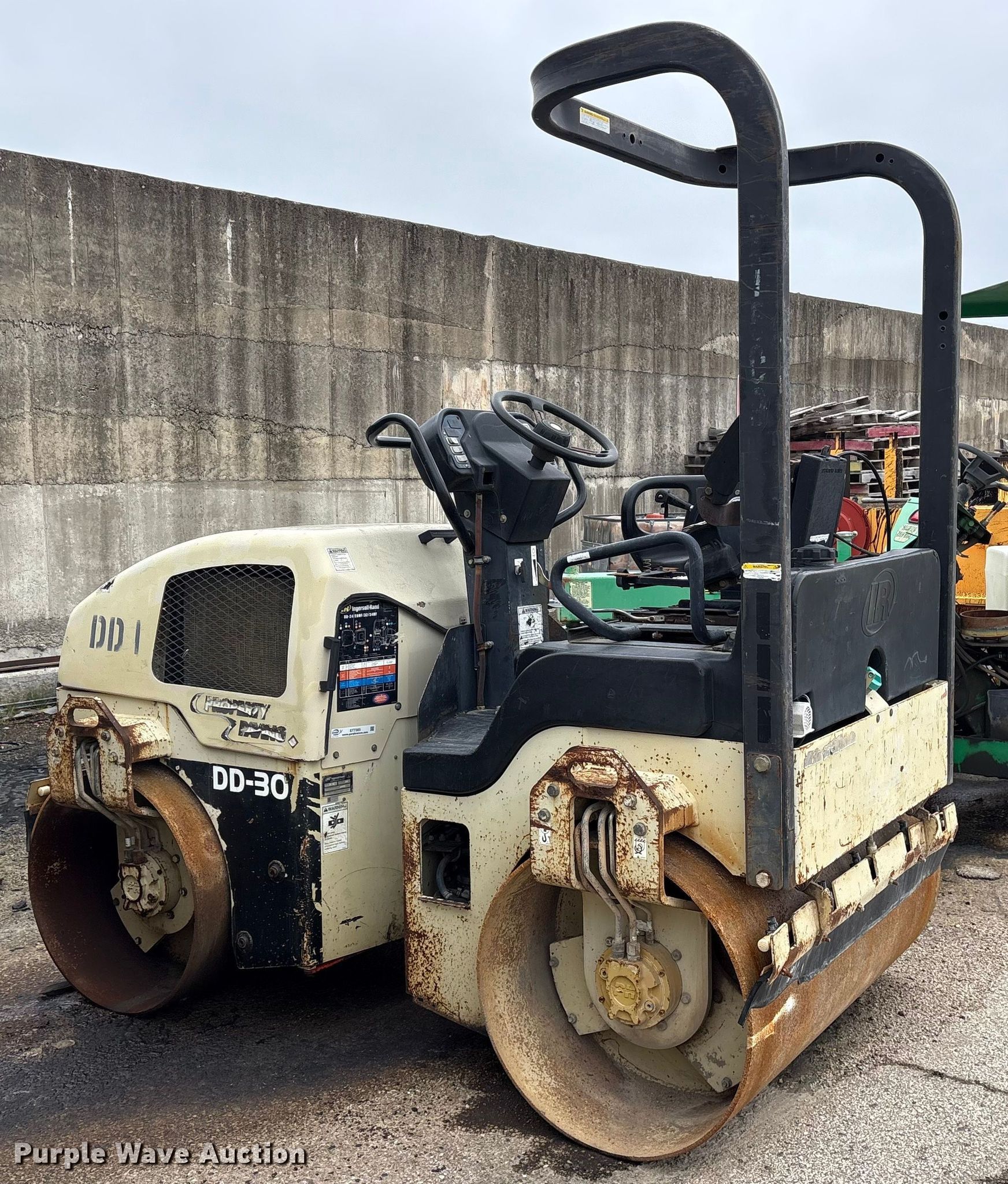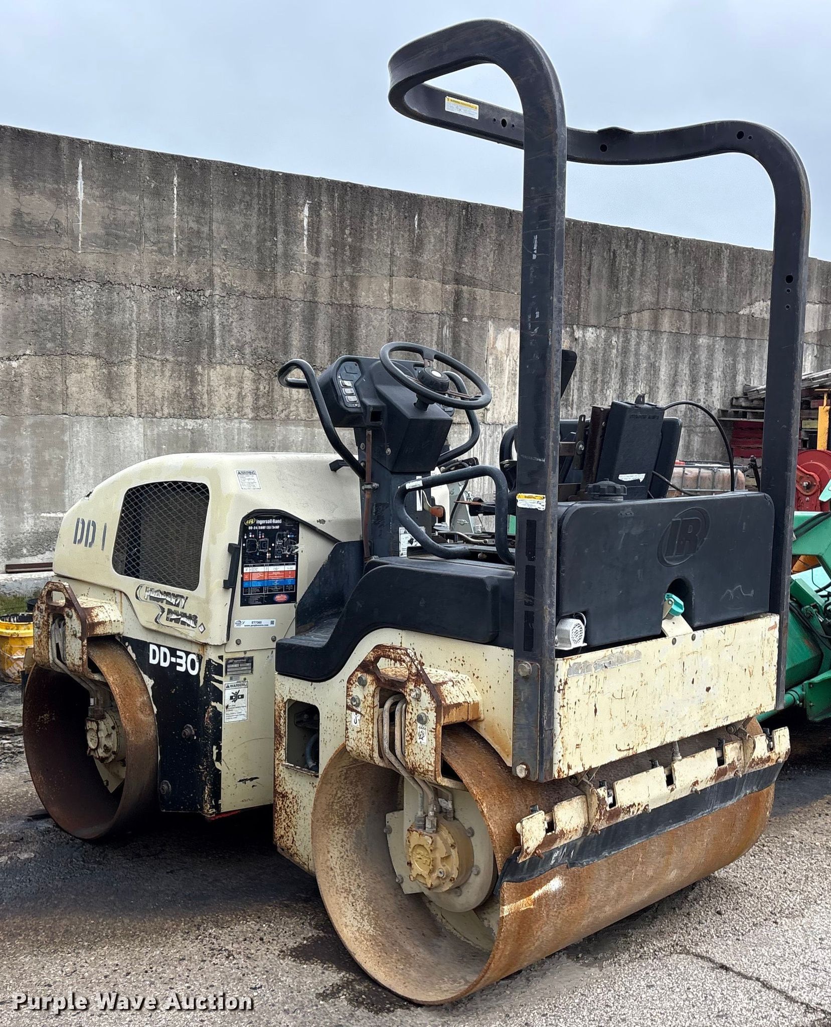 Purple Wave is selling a used Double Drum Roller Compactor in Texas. This item is a 2005 Ingersoll Rand DD-30 double drum vibratory roller with the following: Hours: 5,046 on meter, Serial: 183200, Unit #: DD1
