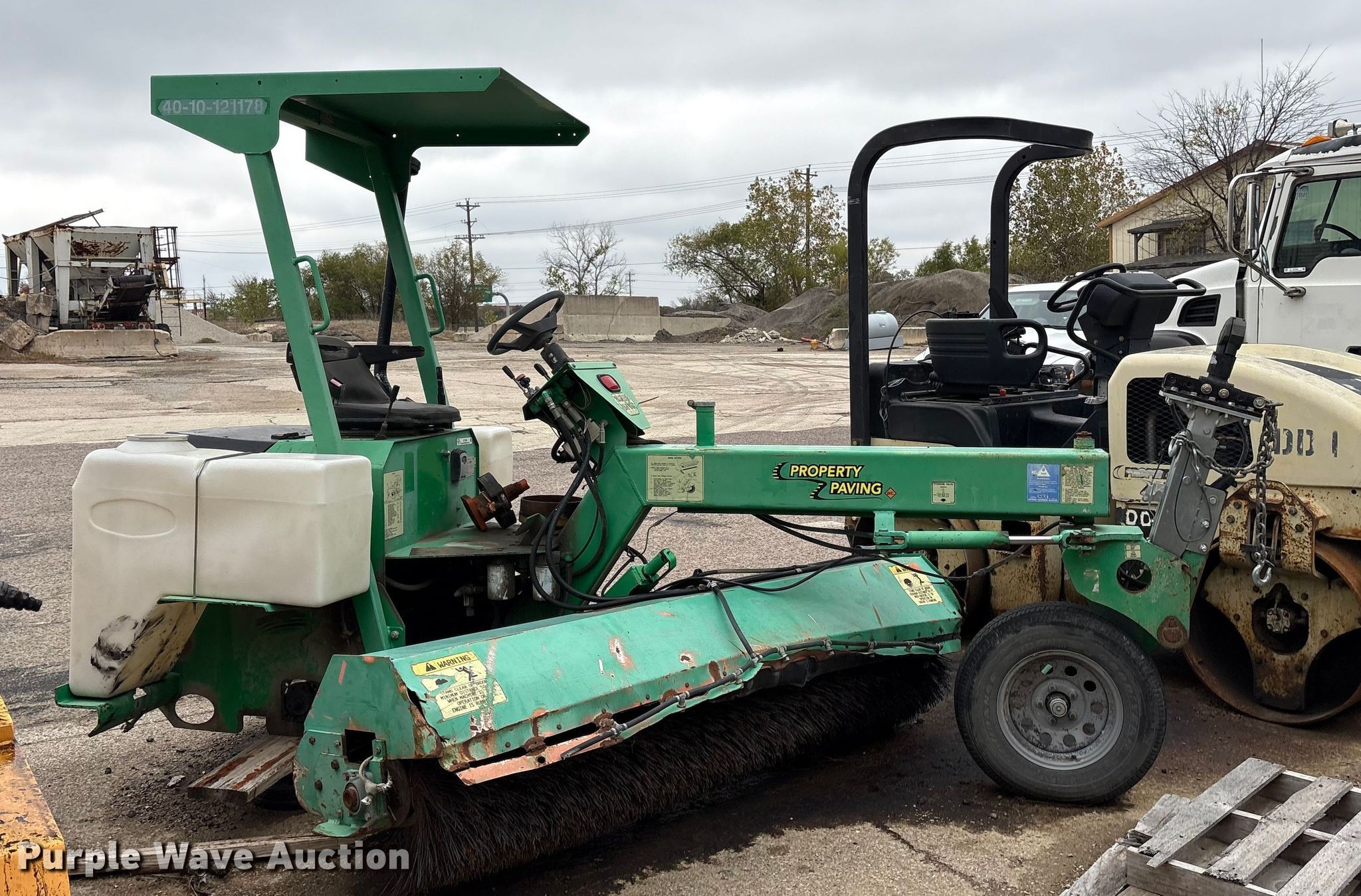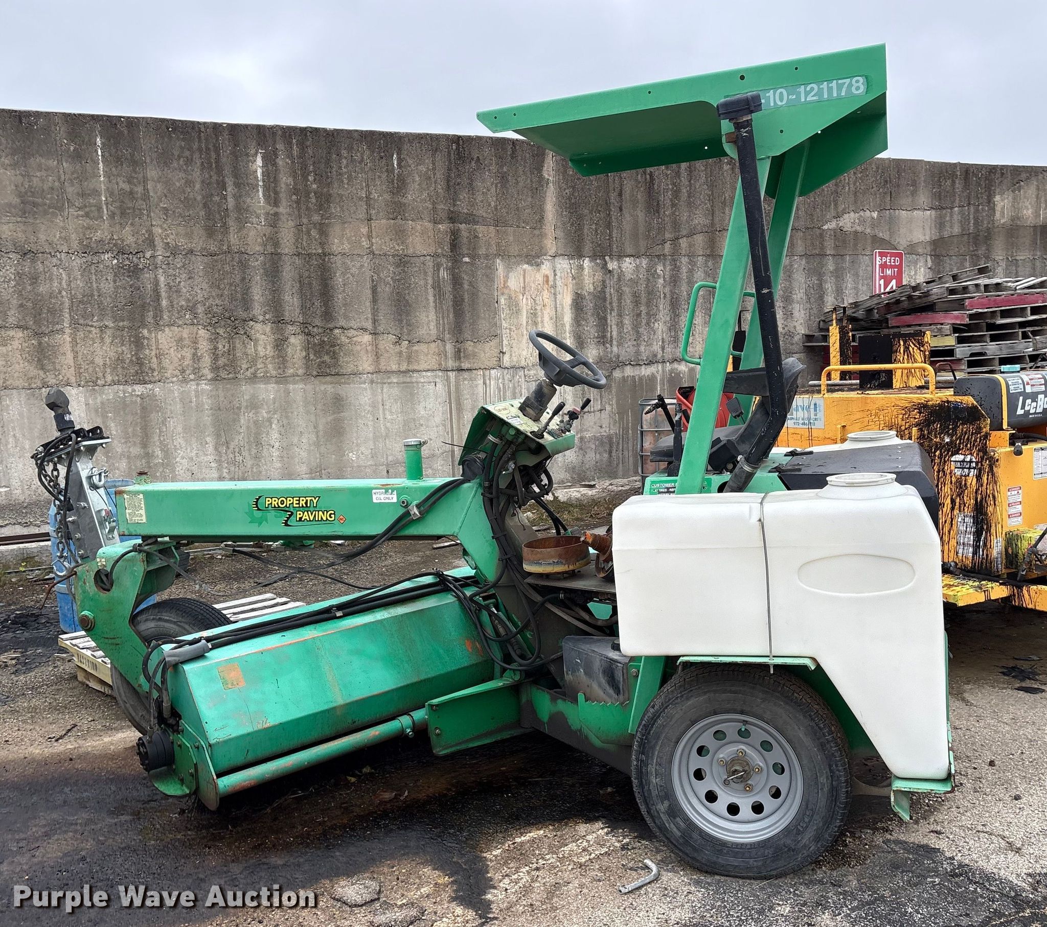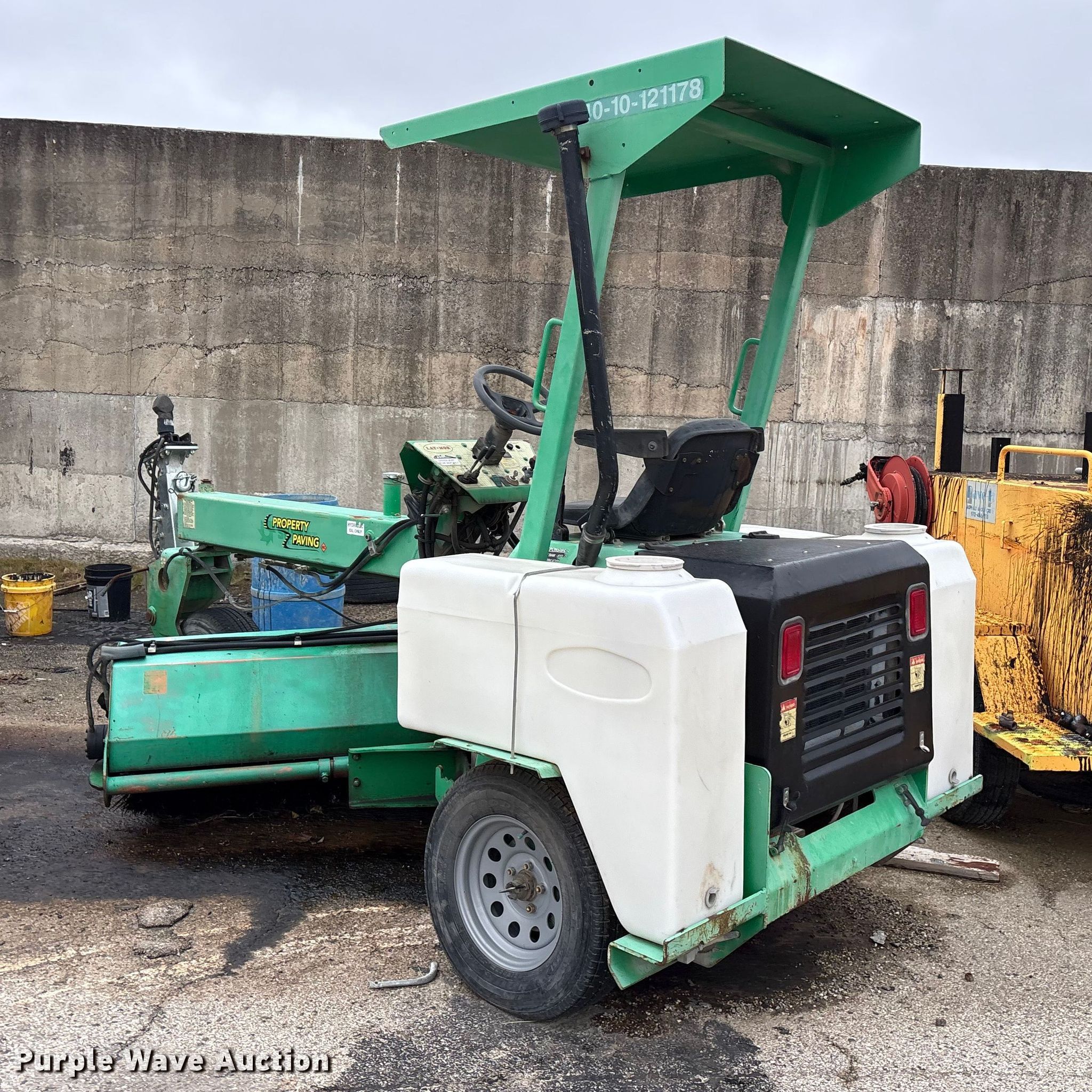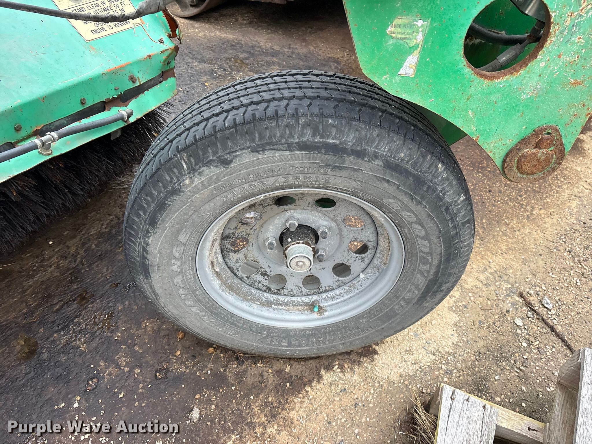 Lay-Mor 8HC broom. Hours: 1,982 on meter, Serial: 31691. Engine Kubota, Cylinders: 4, Fuel type: Diesel. Transmission Hydrostatic. Chassis Brakes: Hydraulic, Suspension: Torsion. Features Broom Width: 96". Tires Size: ST205/75R14. Notes Tire missing, Dead battery, Non-operational unit. Rose Paving. Frisco, TX 75035