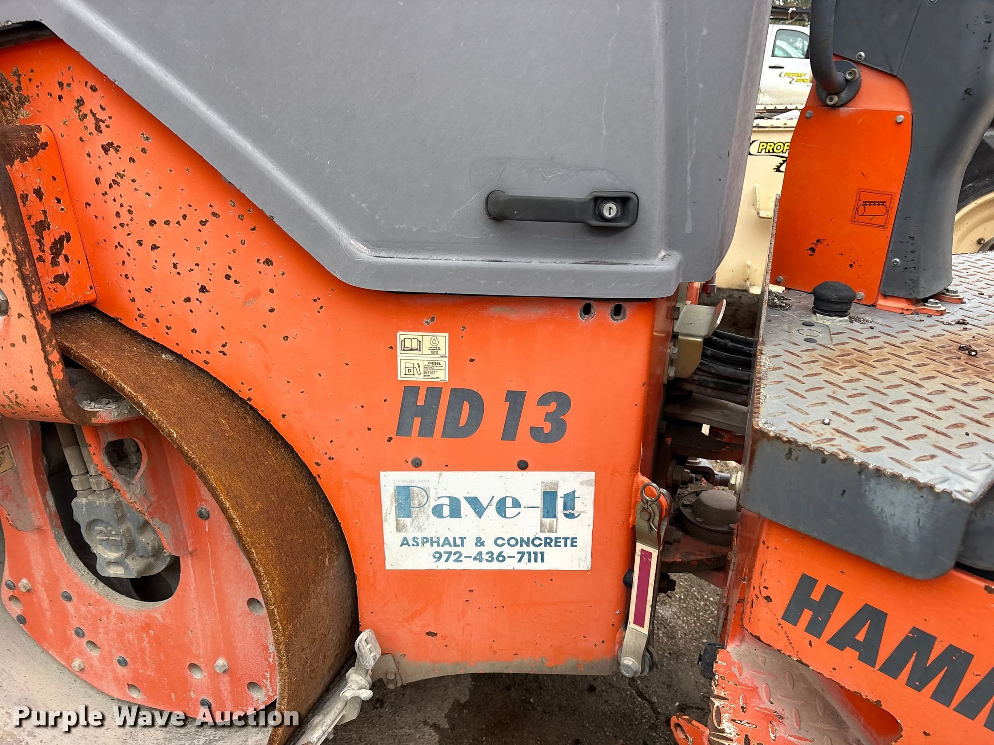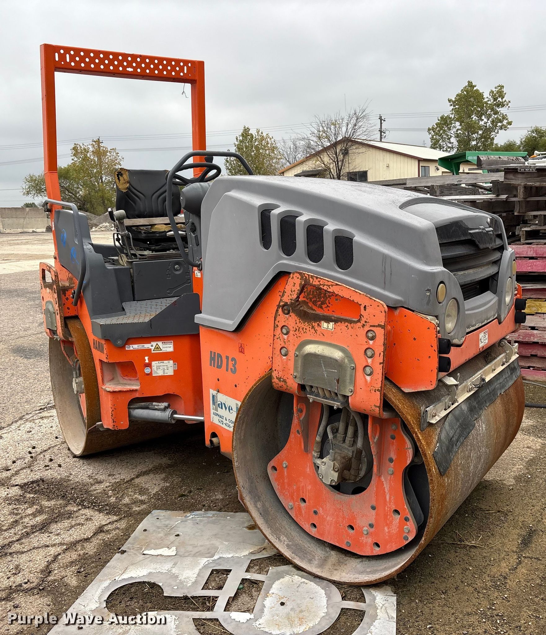 Purple Wave is selling a used Double Drum Roller Compactor in Texas. This item is a 2013 Hamm HD13 double drum vibratory roller with the following: Hours: 128 on meter, Serial: H2011228