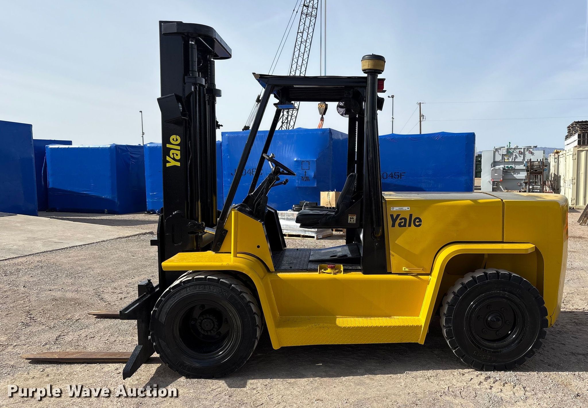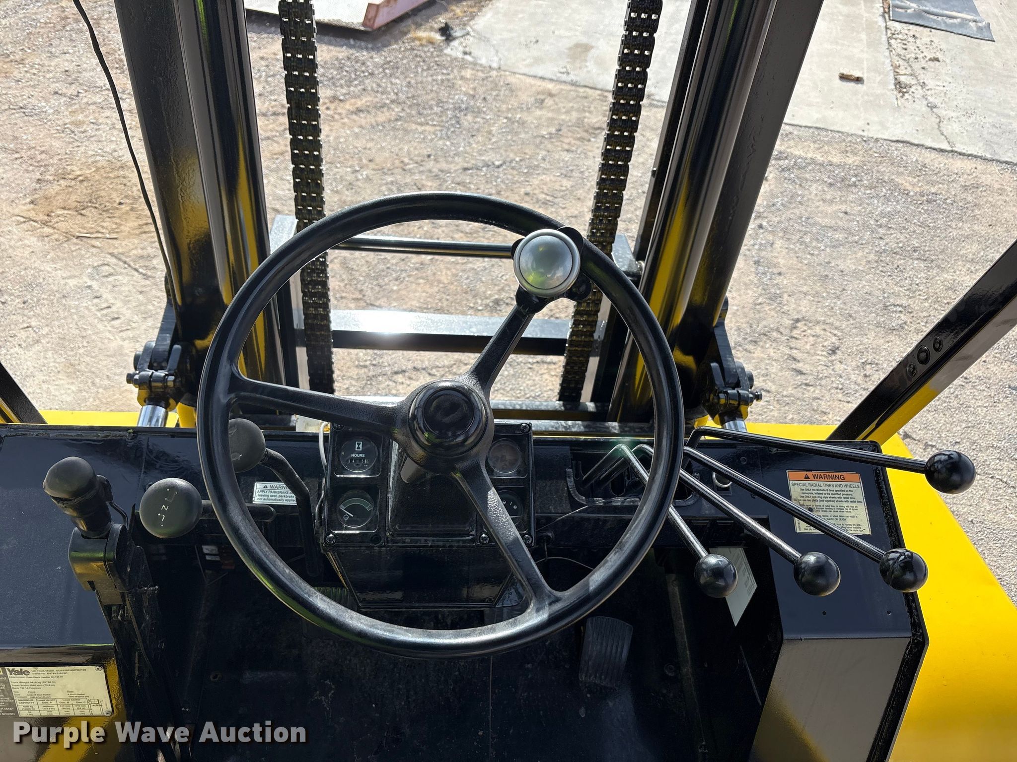 Purple Wave is selling a used Strt. Mast Rough Terr. Forklift in Texas. This item is a Yale GDP155CANPBV108 forklift with the following: Hours: 2,413 on meter, Serial: B878V01816C