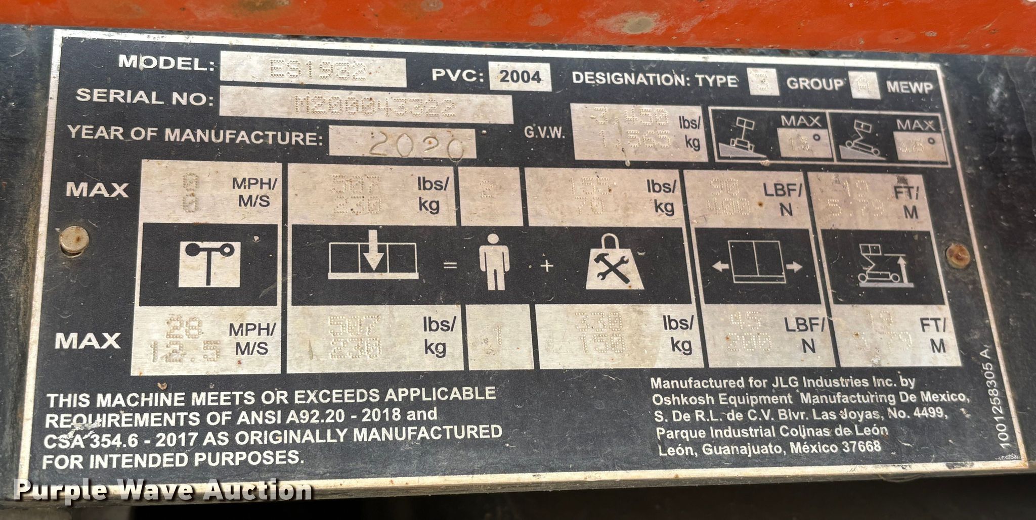 Purple Wave is selling a used Scissor or Vertical Lift in Texas. This item is a 2020 JLG ES1932 scissor lift with the following: Hours: 323 on meter, Serial: M200043322, Unit #: 197259