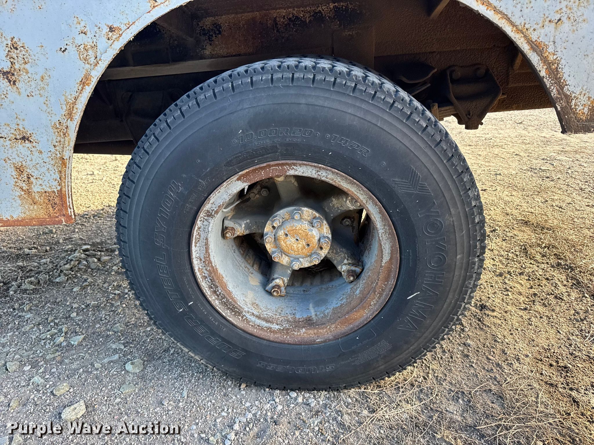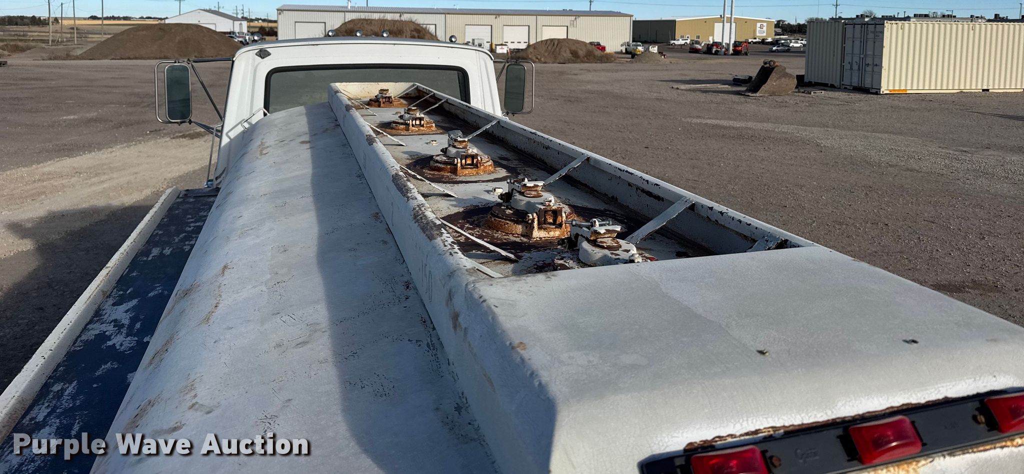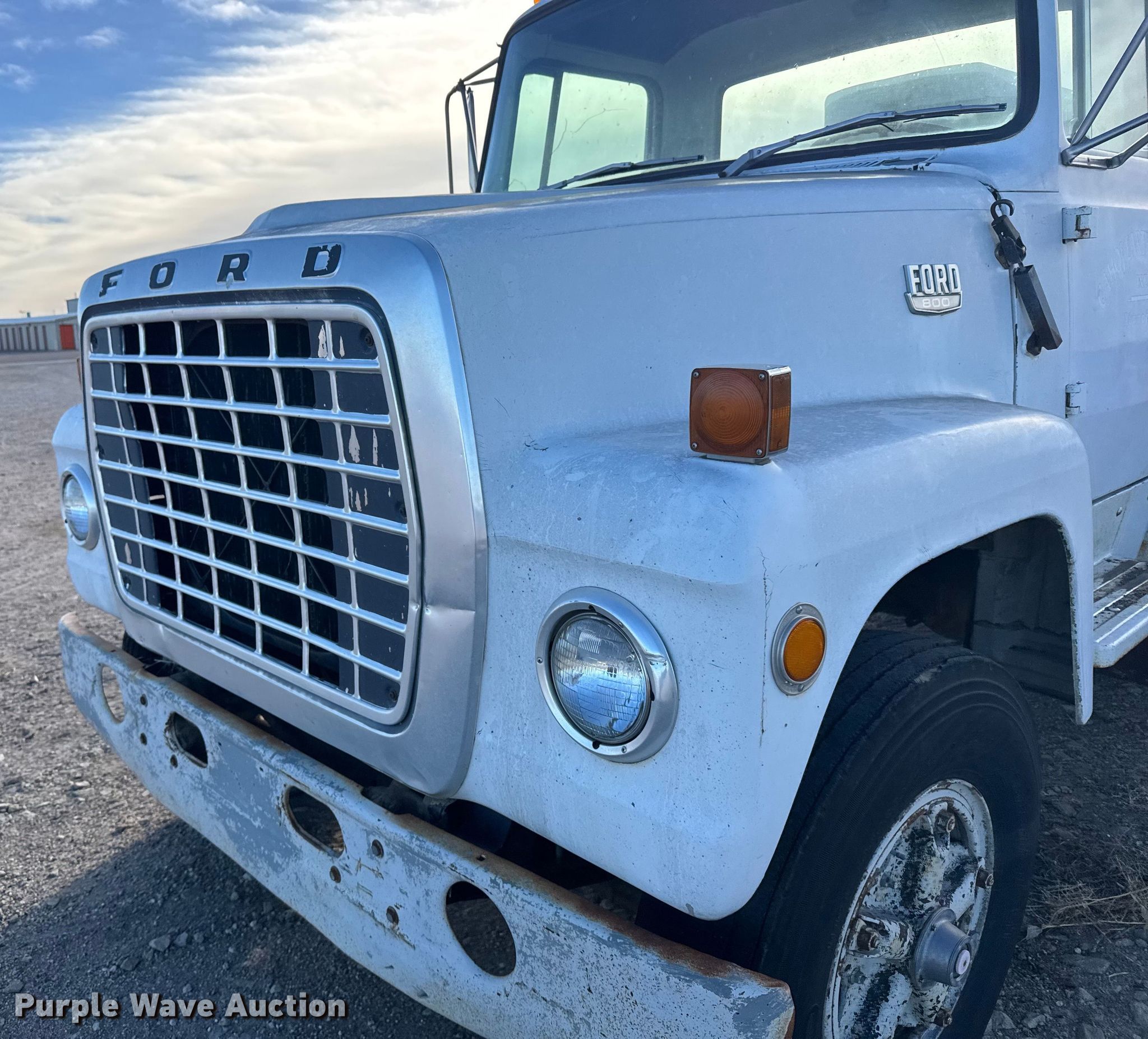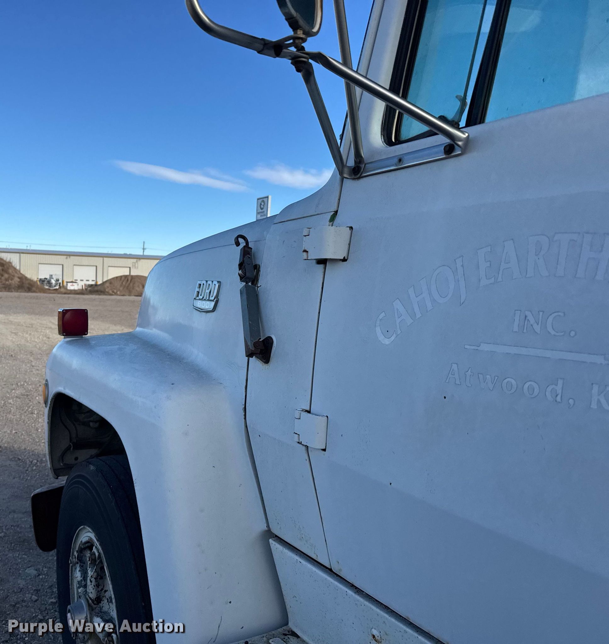1976 Ford 800 fuel truck. Miles: 73,108 on odometer, VIN: FG06VG85747. Engine Cylinders: 8, Fuel type: Gas. Transmission Manual, Speed: 5, plus 2. Chassis Axles: Single, Suspension: Spring, Brakes: Hydraulic, PTO, GVWR: 27,500 lbs. Interior Heat. Features Bed Tank bed, Length: 17', Width: 94", Capacity: 1,750 gallons, Compartments: 5, Hose reels: 2, Nozzles, Metered pumps: 1. Tires Size: 10.00R20. Notes Unknown operating condition. Kansas title. Title distribution may be delayed up to 30 days from verification of funds. Cahoj Earthmoving. Atwood, KS 67730