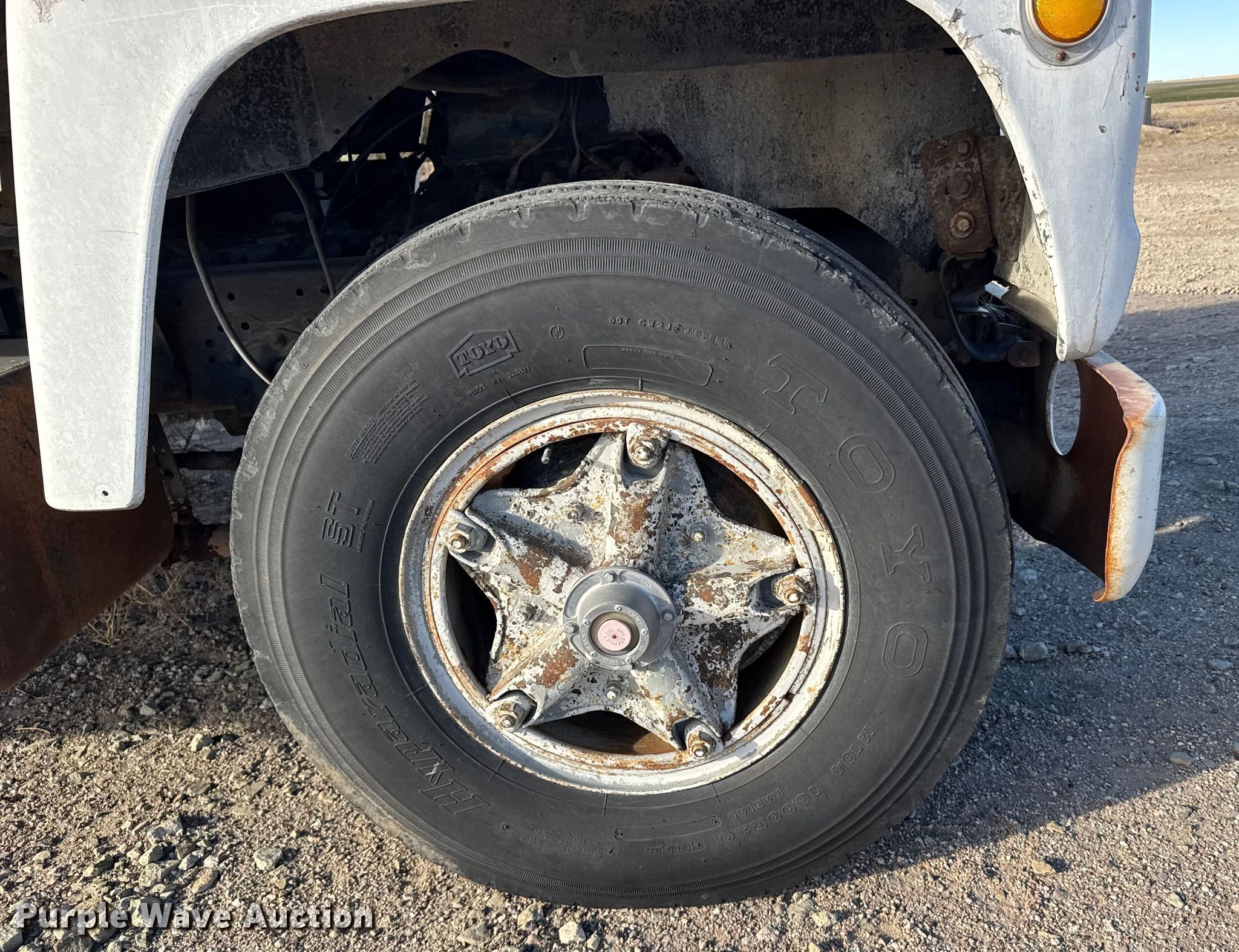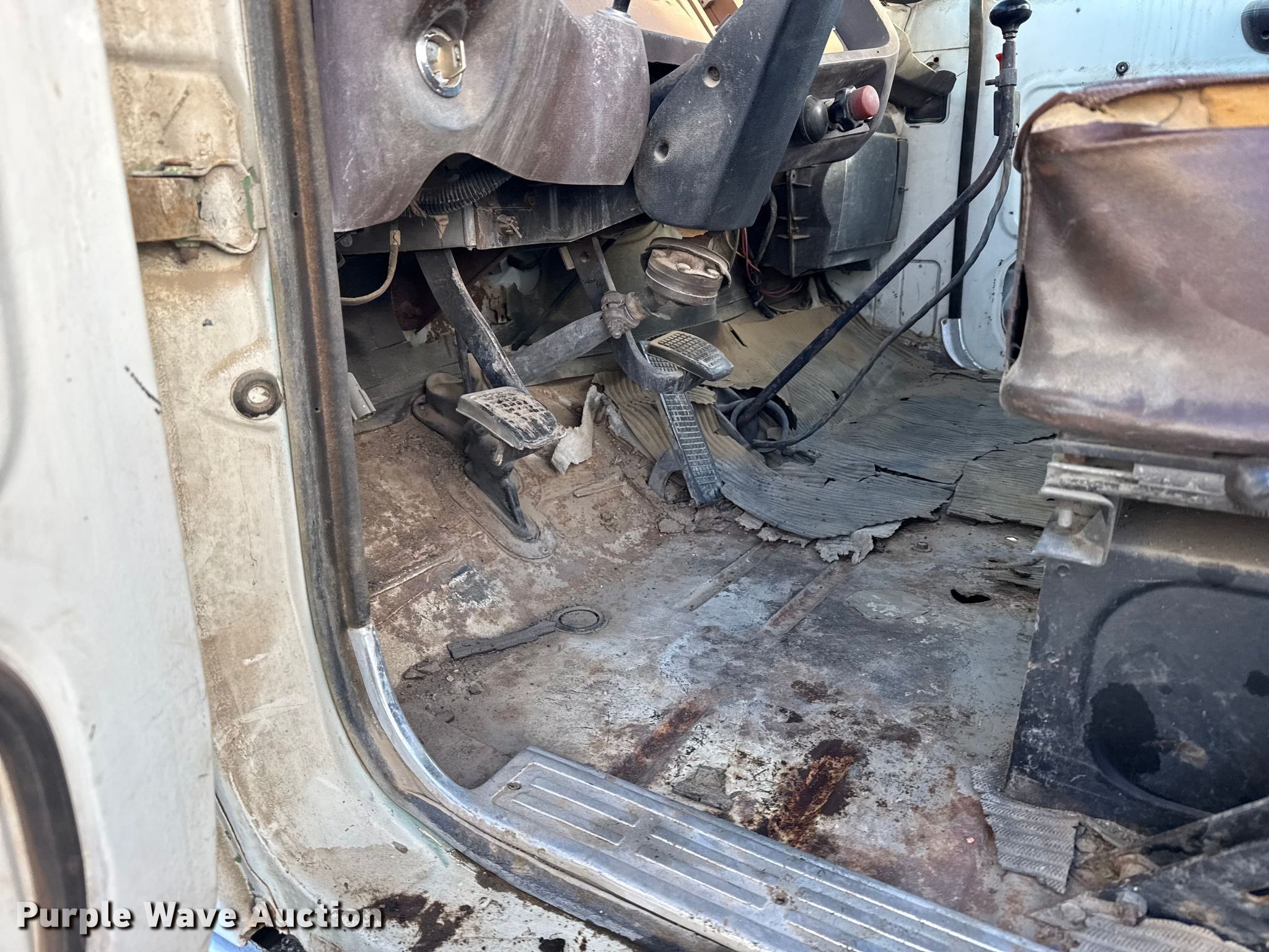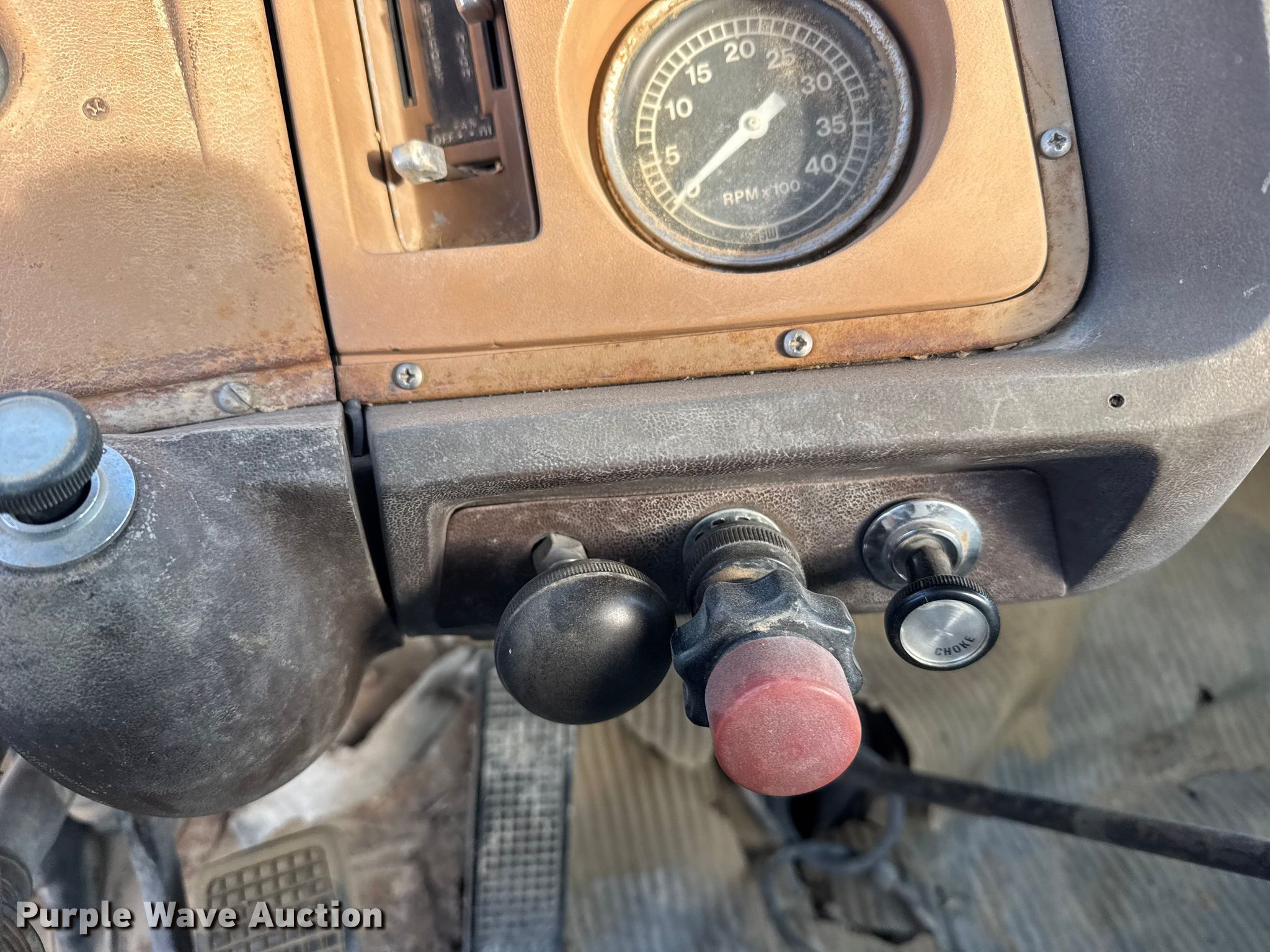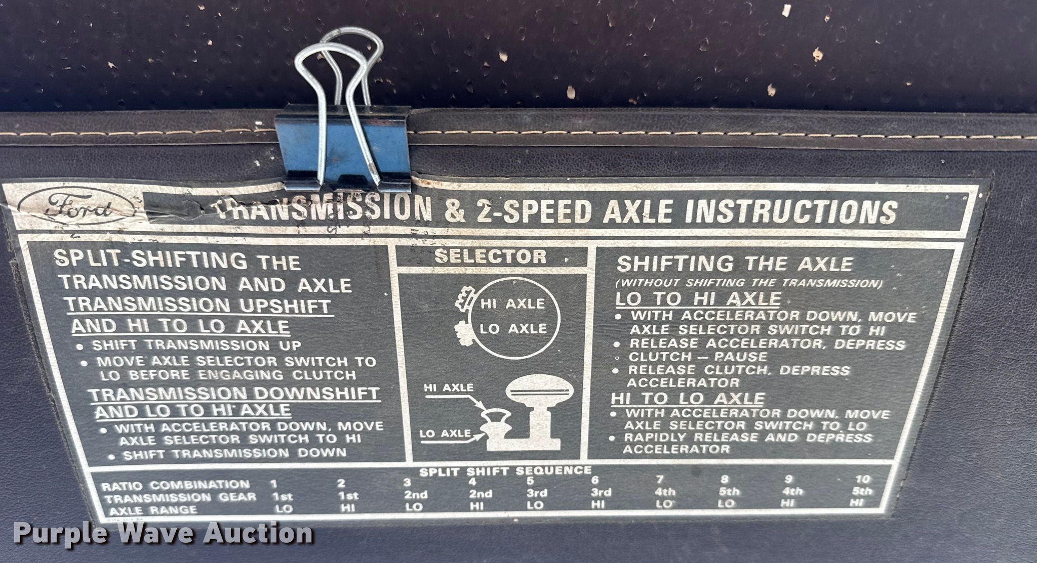 1976 Ford 800 fuel truck. Miles: 73,108 on odometer, VIN: FG06VG85747. Engine Cylinders: 8, Fuel type: Gas. Transmission Manual, Speed: 5, plus 2. Chassis Axles: Single, Suspension: Spring, Brakes: Hydraulic, PTO, GVWR: 27,500 lbs. Interior Heat. Features Bed Tank bed, Length: 17', Width: 94", Capacity: 1,750 gallons, Compartments: 5, Hose reels: 2, Nozzles, Metered pumps: 1. Tires Size: 10.00R20. Notes Unknown operating condition. Kansas title. Title distribution may be delayed up to 30 days from verification of funds. Cahoj Earthmoving. Atwood, KS 67730