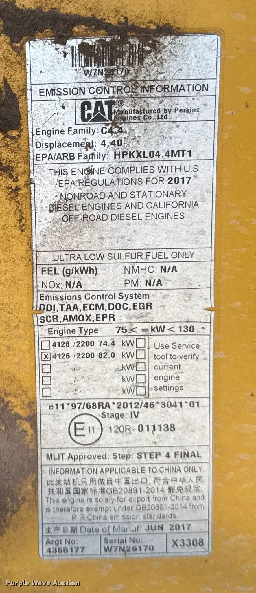 - Serial: CAT0420FHHWD02106