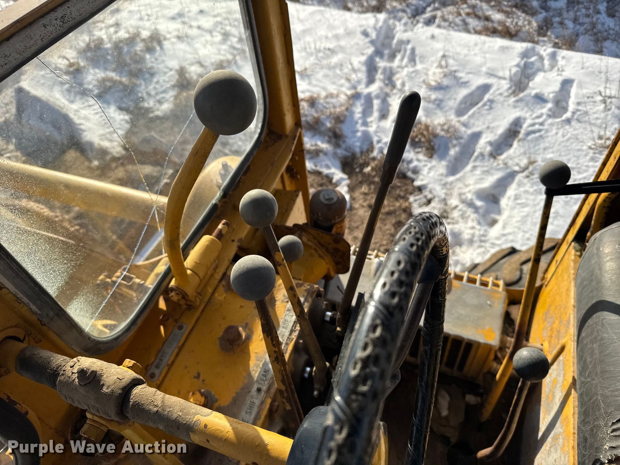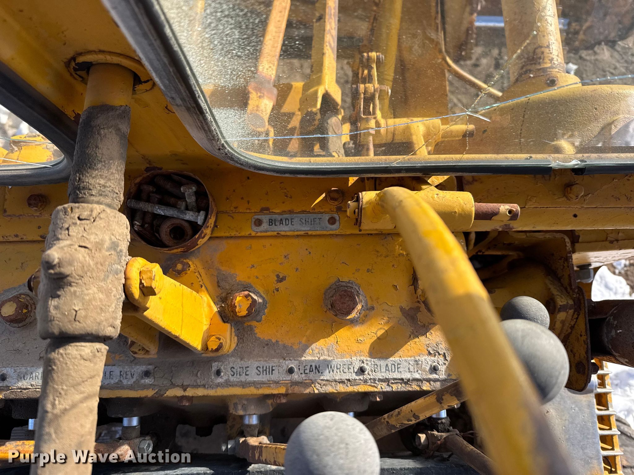 1962 Caterpillar 14D motor grader. Hours: 4,154 on meter, Serial: 96F488. Engine Cylinders: 6, Fuel type: Diesel. Transmission Direct-drive, 8F - 8R. Operators station Enclosed cab. Features Moldboard: Side shift, Moldboard total width: 14', Scarifier Scarifier type: Mid-mounted Teeth: 4.. Tires Size: 14.00R24. Notes Glass cracked. SB Wyatt Contracting, Inc. Otis, KS 67565