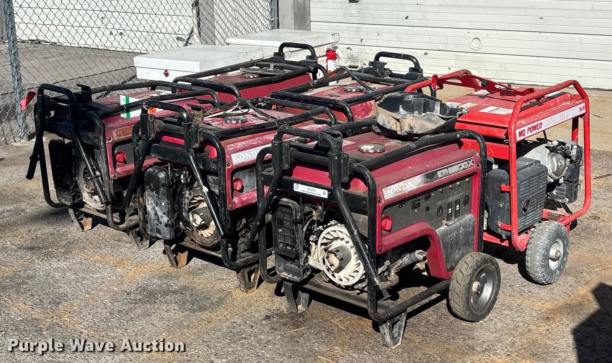 Purple Wave is selling a used Generator Set in Arizona. This item is a (6) generators with the following: (5) Honda EB6500X, Multiquip GA-6HR