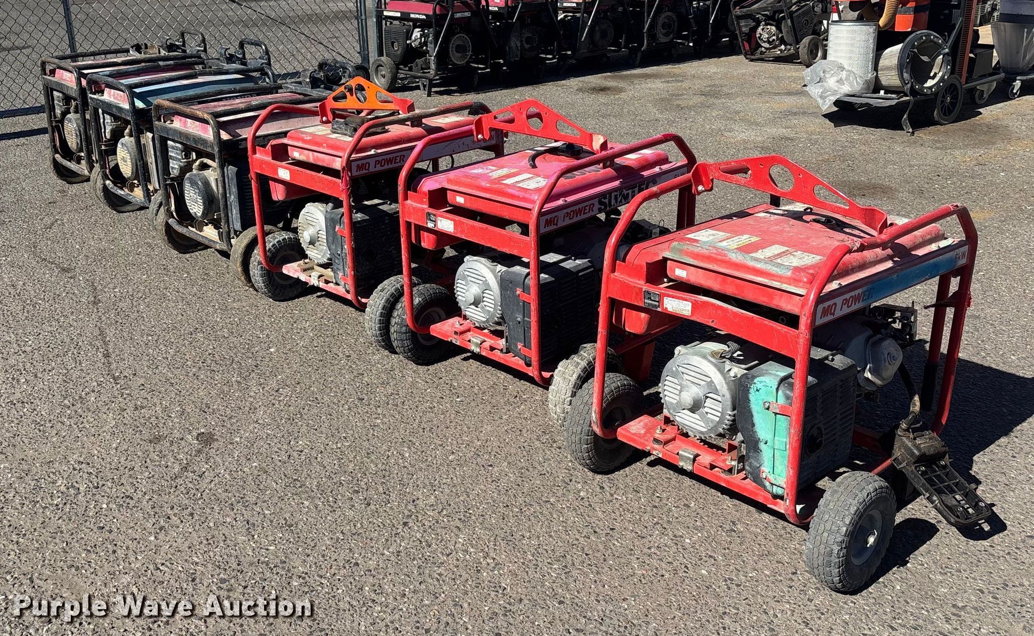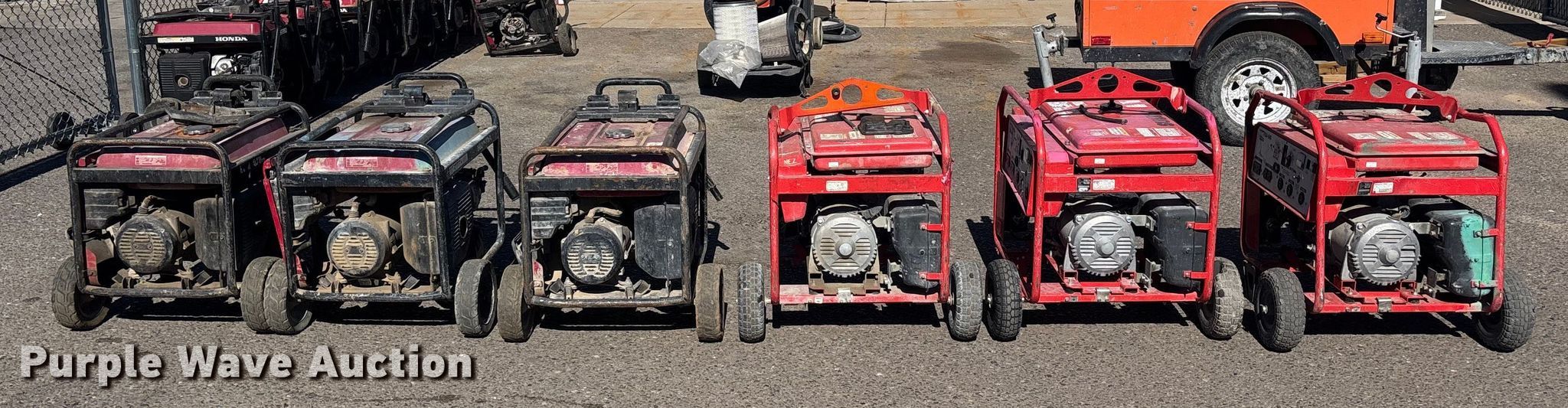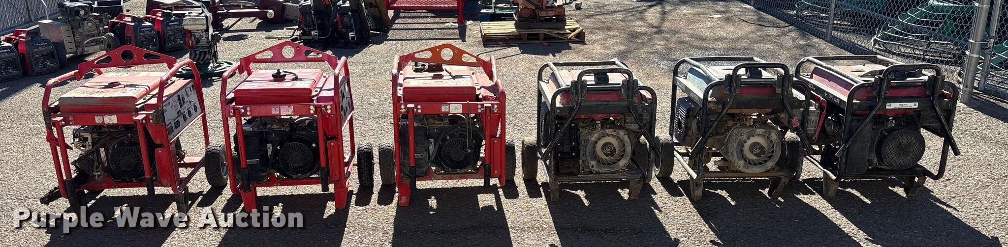 Purple Wave is selling a used Generator Set in Arizona. This item is a (6) generators with the following: (3) Honda EB6500X, (3) Multiquip GA-6HR