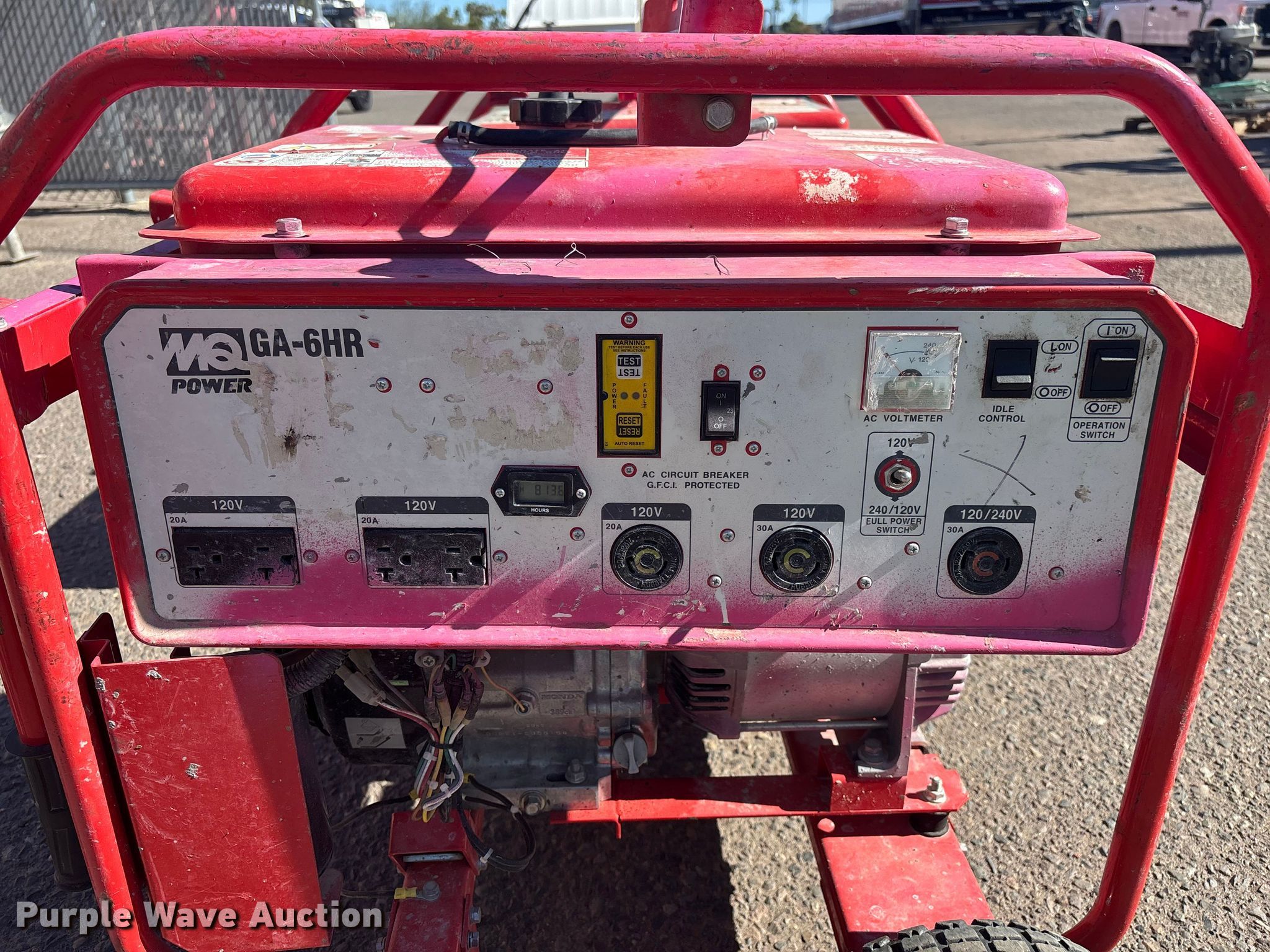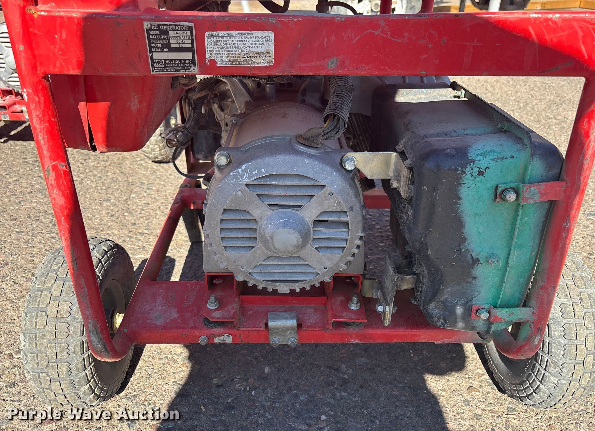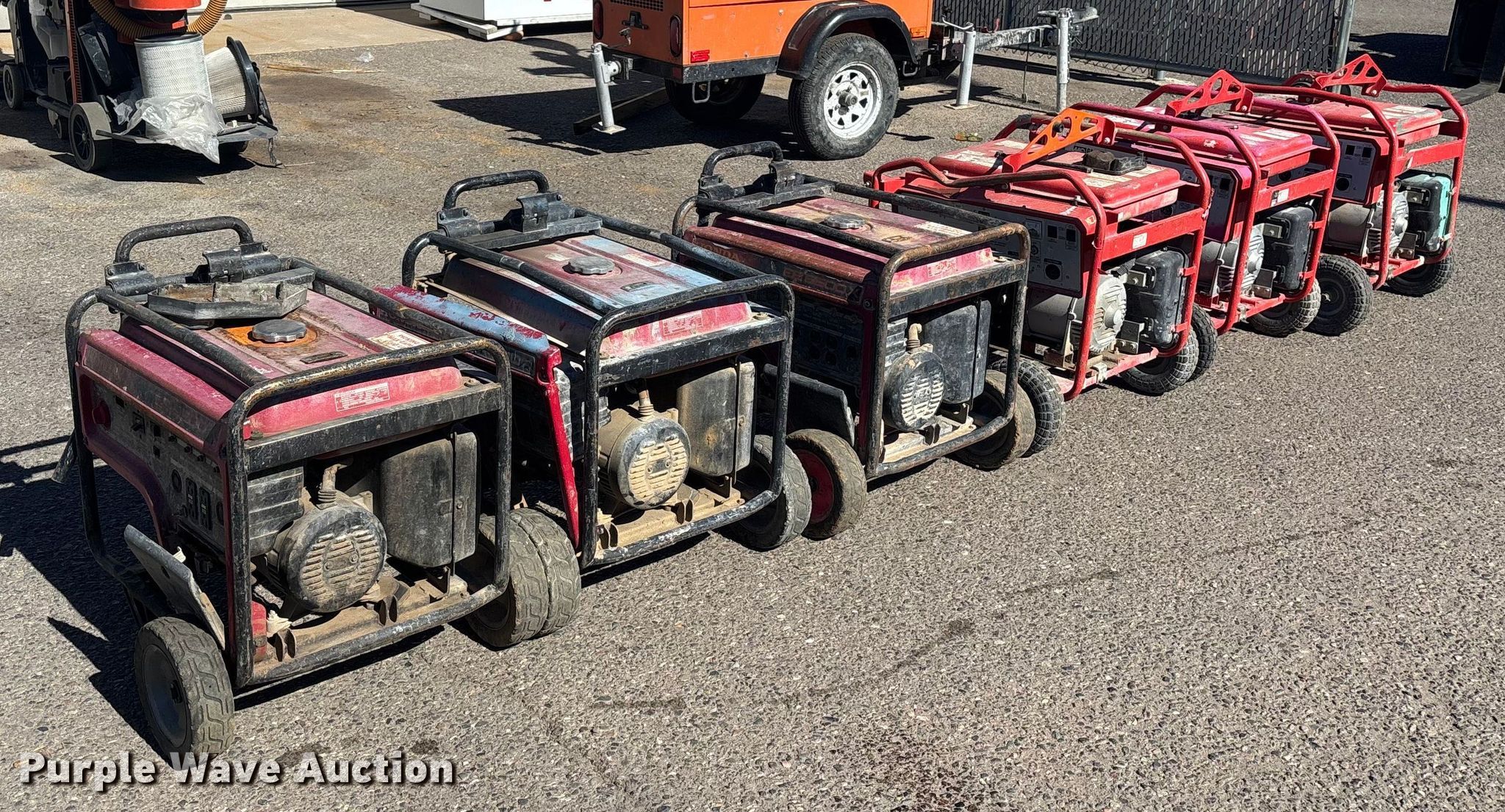 Purple Wave is selling a used Generator Set in Arizona. This item is a (6) generators with the following: (3) Honda EB6500X, (3) Multiquip GA-6HR