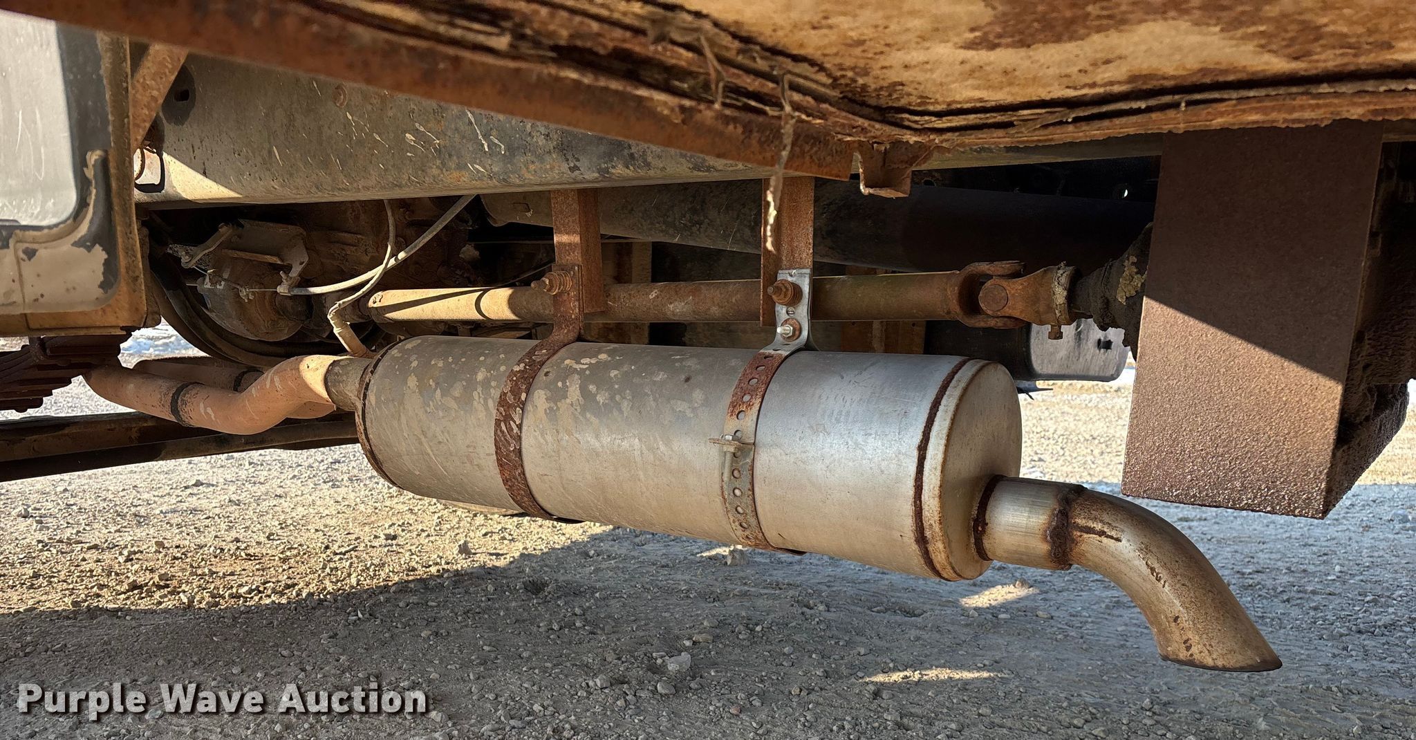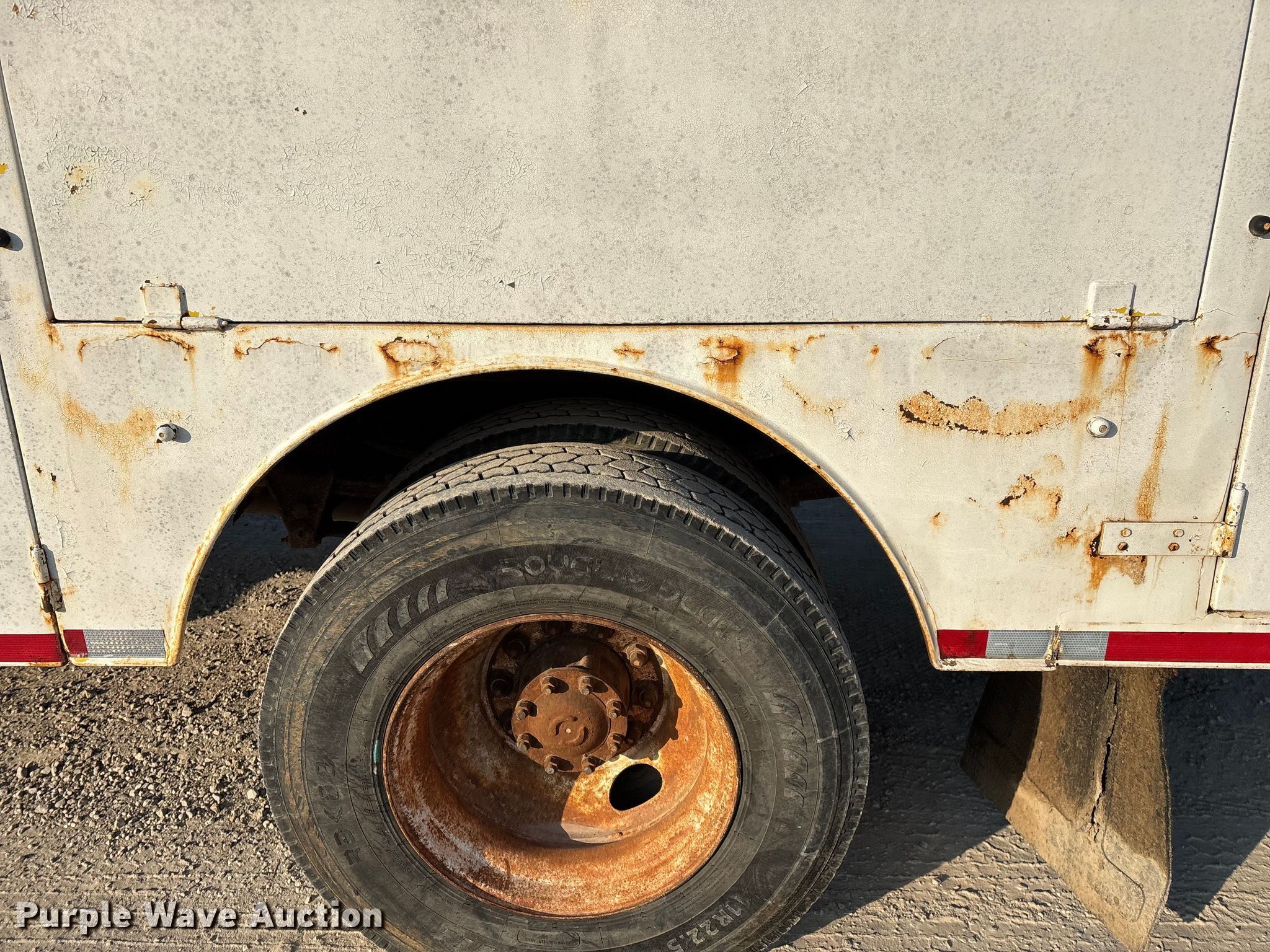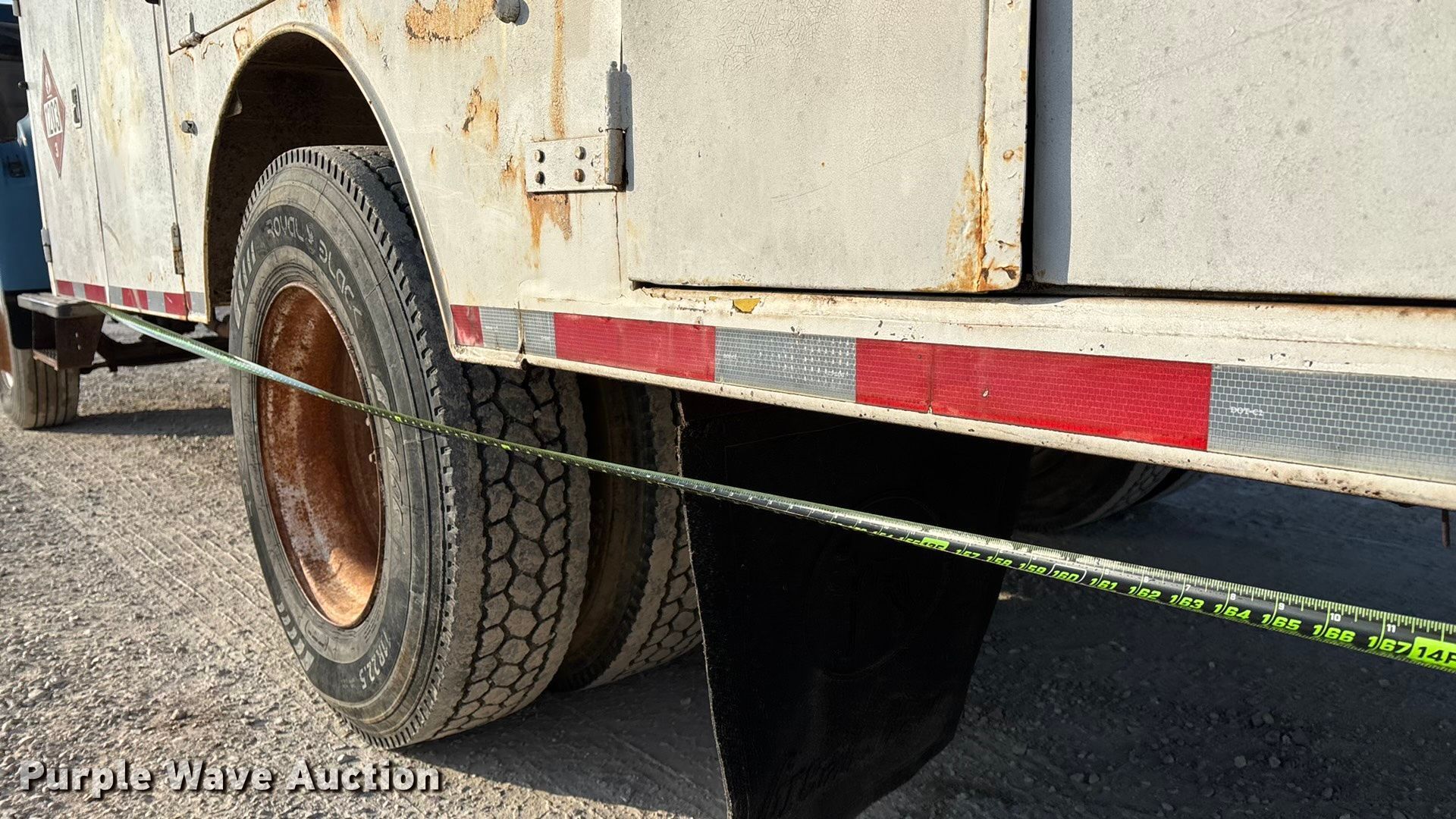 1995 Ford F700 fuel truck. Miles: 91,319 on odometer, VIN: 1FDPF70J7SVA52192, Unit #: 03. Engine Displacement: 7.0L, Cylinders: 8, Fuel type: Gas. Transmission Manual, Speed: 5, plus 2. Chassis Axles: Single, Suspension: Spring, Brakes: Hydraulic, PTO, GVWR: 33,000 lbs. Interior Heat. Features Bed Tank bed, General, Length: 16', Width: 95", Hose reel, Top fill. Tires Size: 11R22.5. Notes License plate will be removed prior to auction, Contents not included, Interior drivers door handle missing, Remaining fluid in tank, will be removed prior to auction, Bed rust damage. Missouri title. Title distribution may be delayed up to 14 days from verification of funds. Fleet Fuels LLC. Camdenton, MO 65020