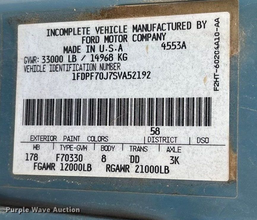 - VIN: 1FDPF70J7SVA52192