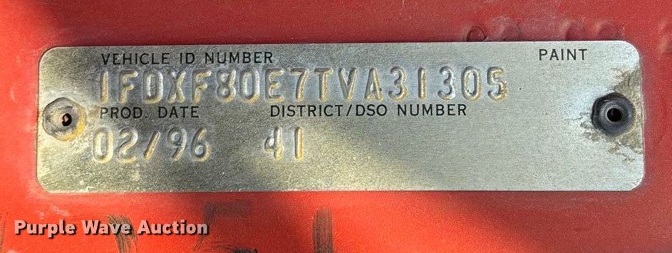 Purple Wave is selling a used Flat Bed Truck in Missouri. This item is a 1996 Ford F-Series Flat bed truck with crane with the following: Miles: 132,361 on odometer, VIN: 1FDXF80E7TVA31305