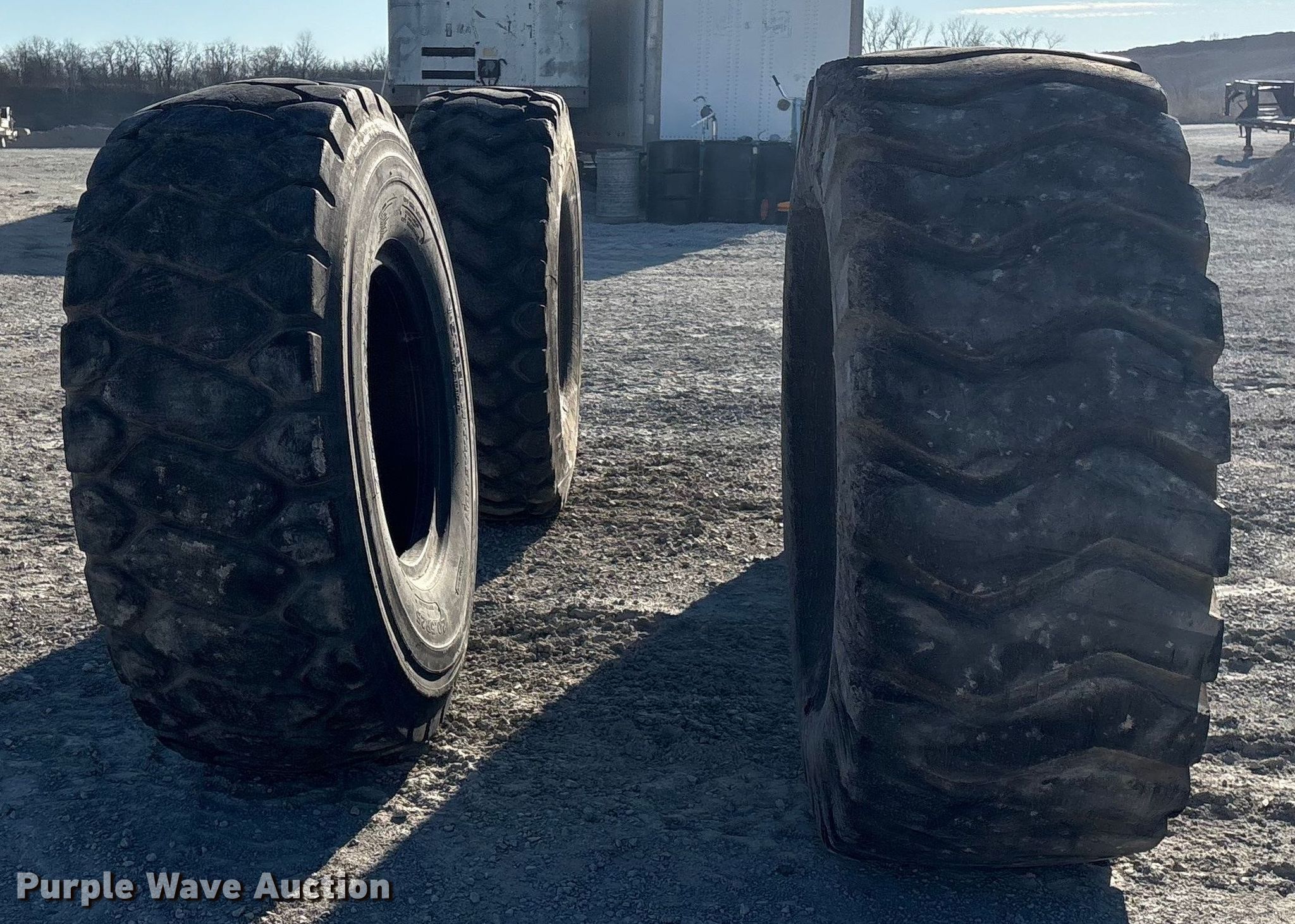 (4) tires. Michelin 20.5R25, Ling Long 23.5-25, YKS 23.5-25, Bridgestone 20.5R25. Hamilton, MO 64644