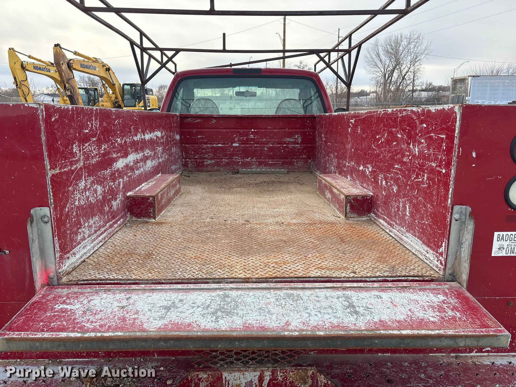 This 2006 Ford F350 Super Duty XL utility bed pickup truck will sell to the highest bidder regardless of price.