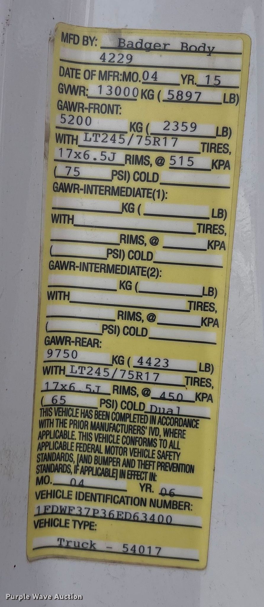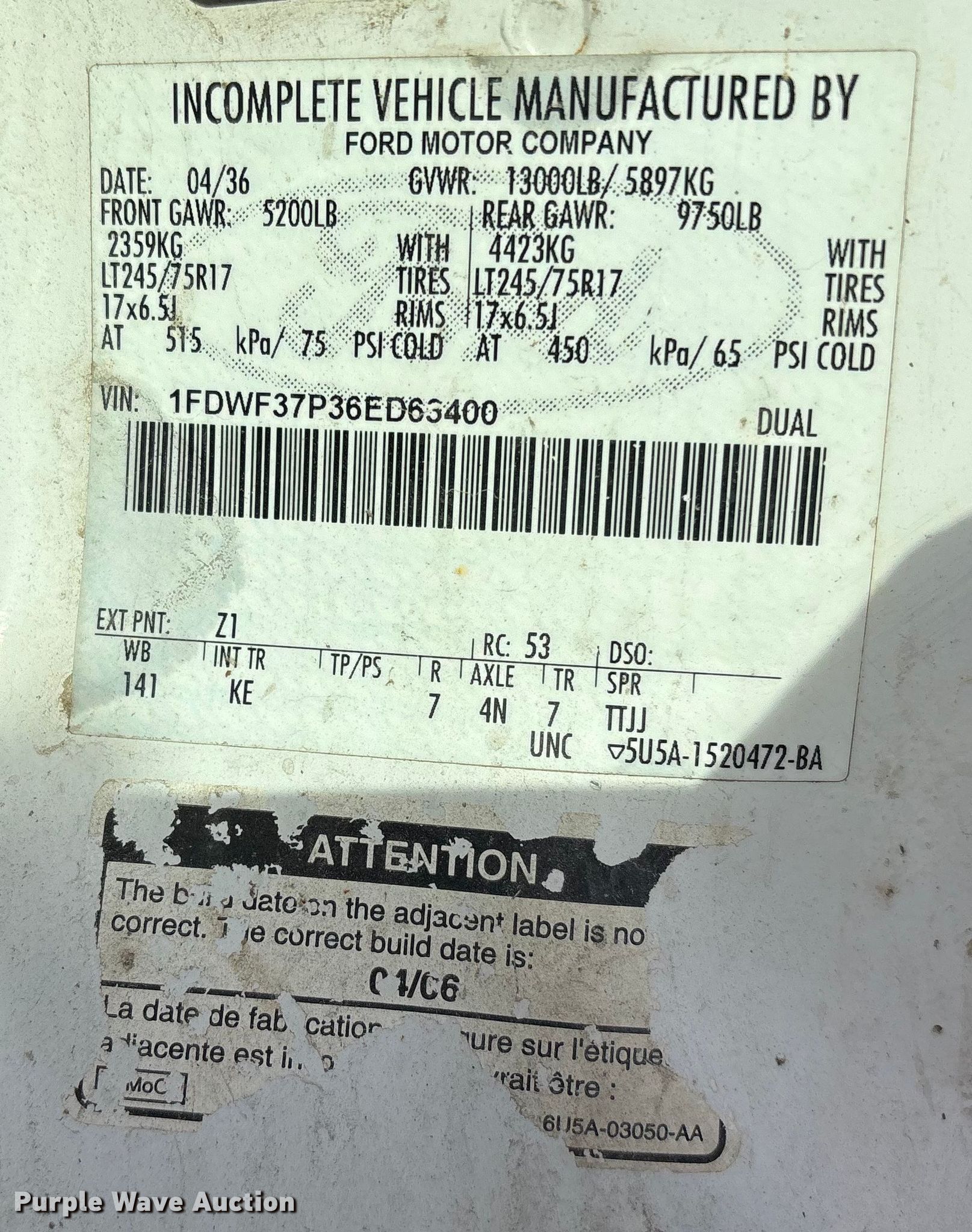- VIN: 1FDWF37P36ED63400