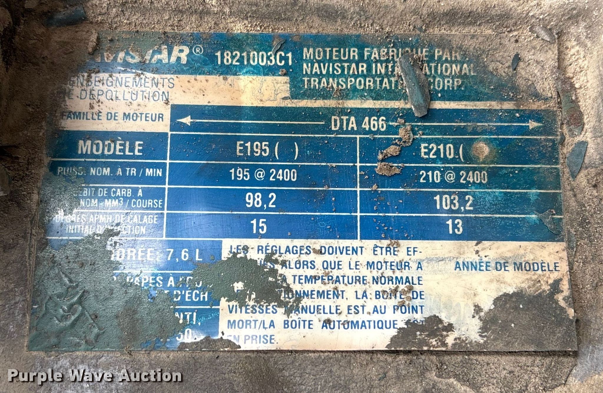 1993 International 4900 dump truck. Miles: 266,373 on odometer, VIN: 1HTSDPPR7PH501508. Engine International DT466, Displacement: 7.6L, Cylinders: 6, Fuel type: Diesel. Transmission Manual. Chassis Axles: Tandem, Differential lock: Inter-axle, Suspension: Spring over walking beam, Brakes: Air, PTO, GVWR: 54,000 lbs, Wheelbase: 218". Interior Heat. Features Bed Dump bed, Length: 16', Width: 96", Side height: 48", Roll tarp, Ram: Single, End gate: Air operated. Tires Front: 315/80R22.5, Rear: 11R22.5. Nebraska title. Title distribution may be delayed up to 30 days from verification of funds. ABJ Hauling LLC. Lincoln, NE 68528