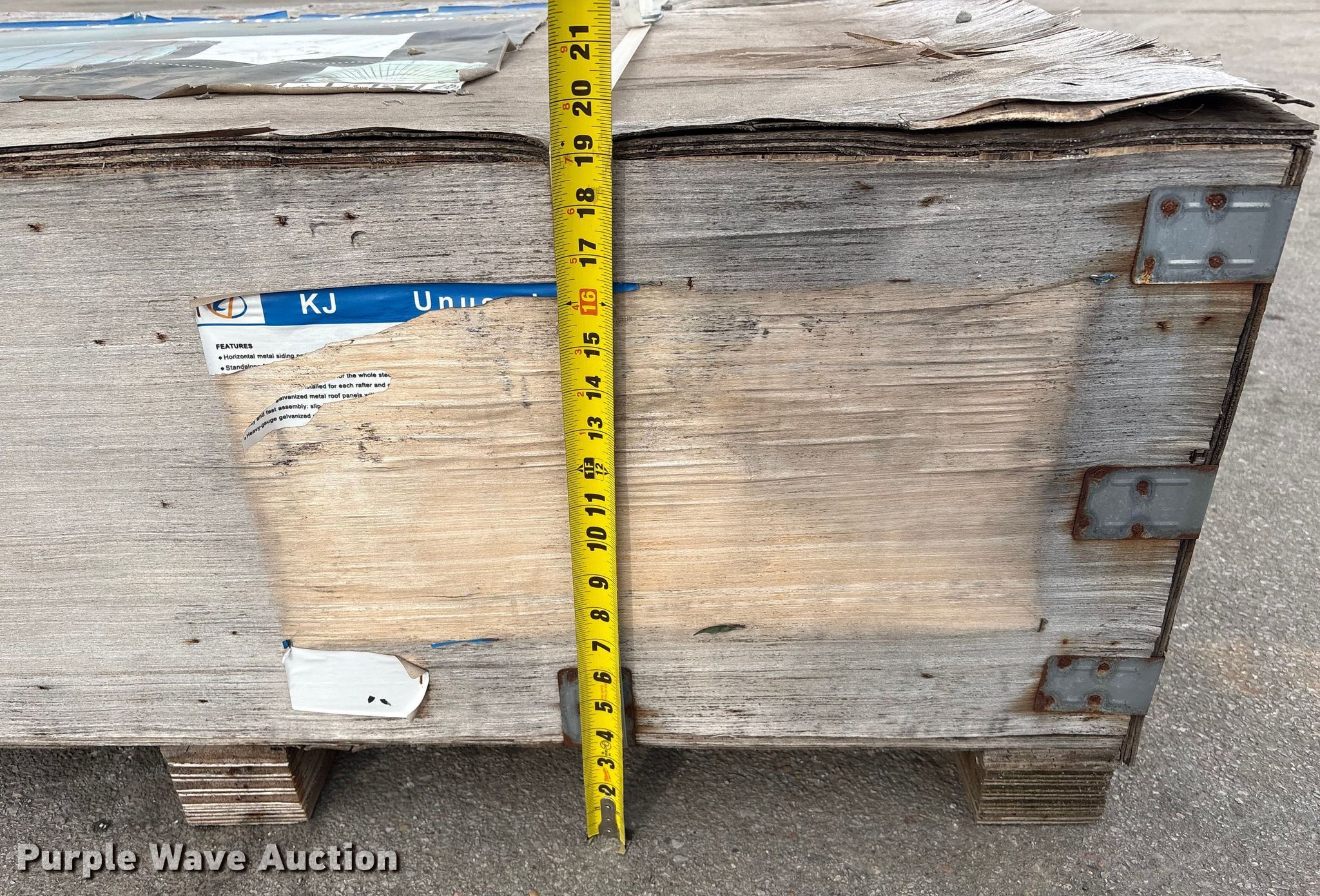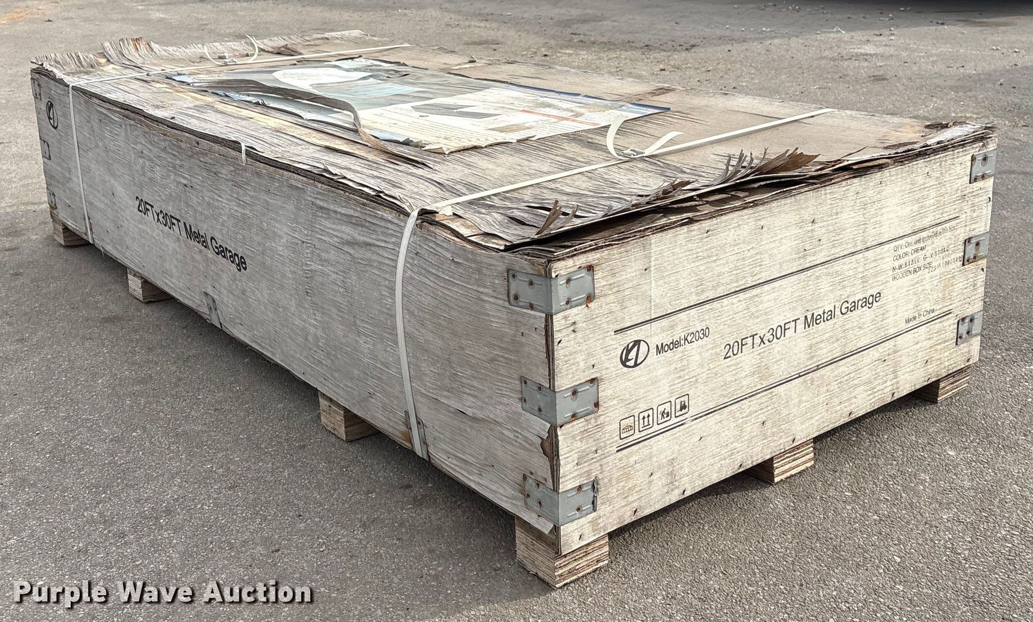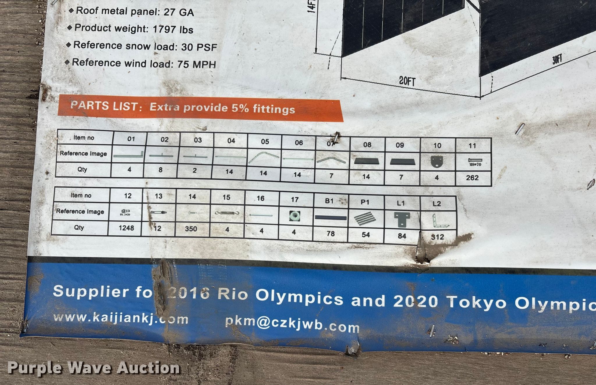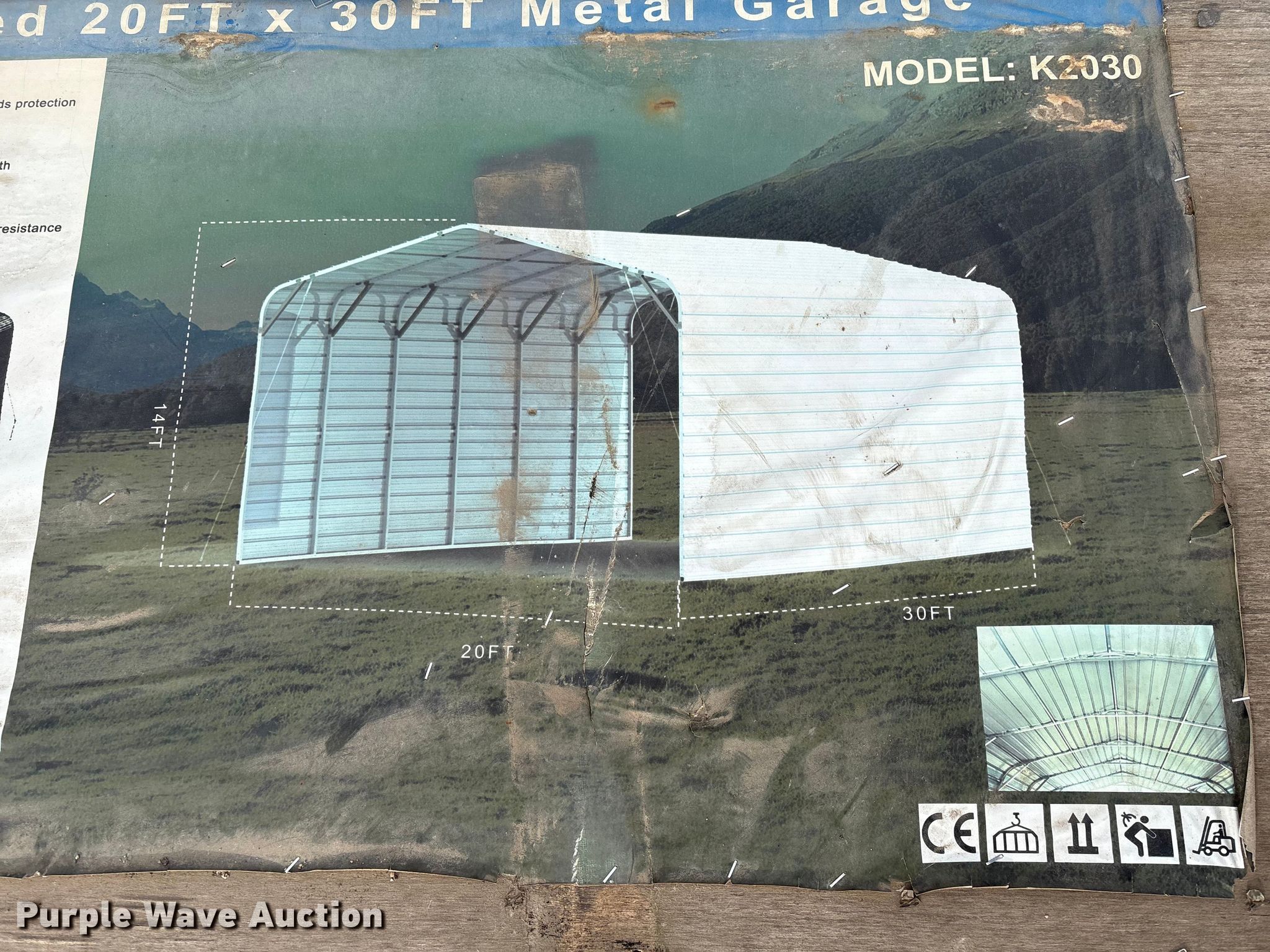 Purple Wave is selling a used Building Materials in Nebraska. This item is a KJ K2030 metal garage with the following: Dimensions: 20' x 30' x 14', Sidewall height: 10', Peak ceiling height: 13', Roof metal: 27 GA, Product weight: 1797lbs, Wind load: 75mph