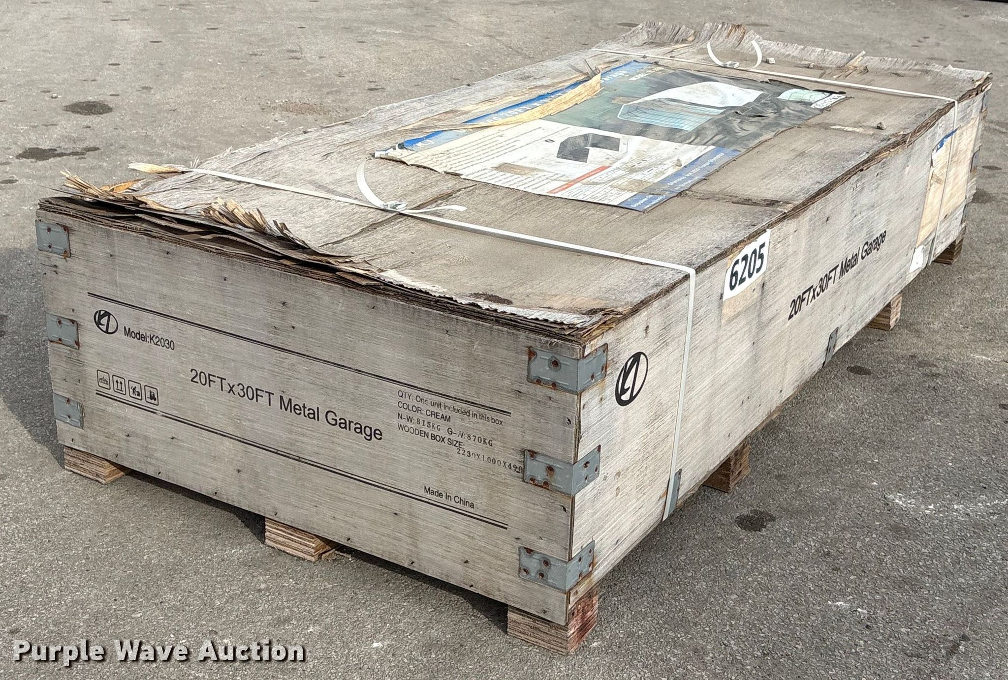 This KJ K2030 metal garage will sell to the highest bidder regardless of price.