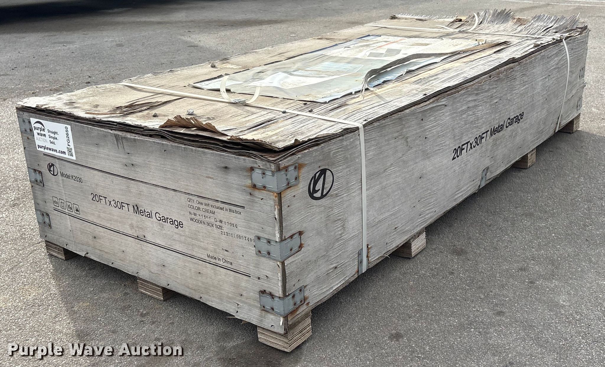 KJ K2030 metal garage for sale in Waterloo, Nebraska. Item FG2650 will sell on February 26th, 2026.