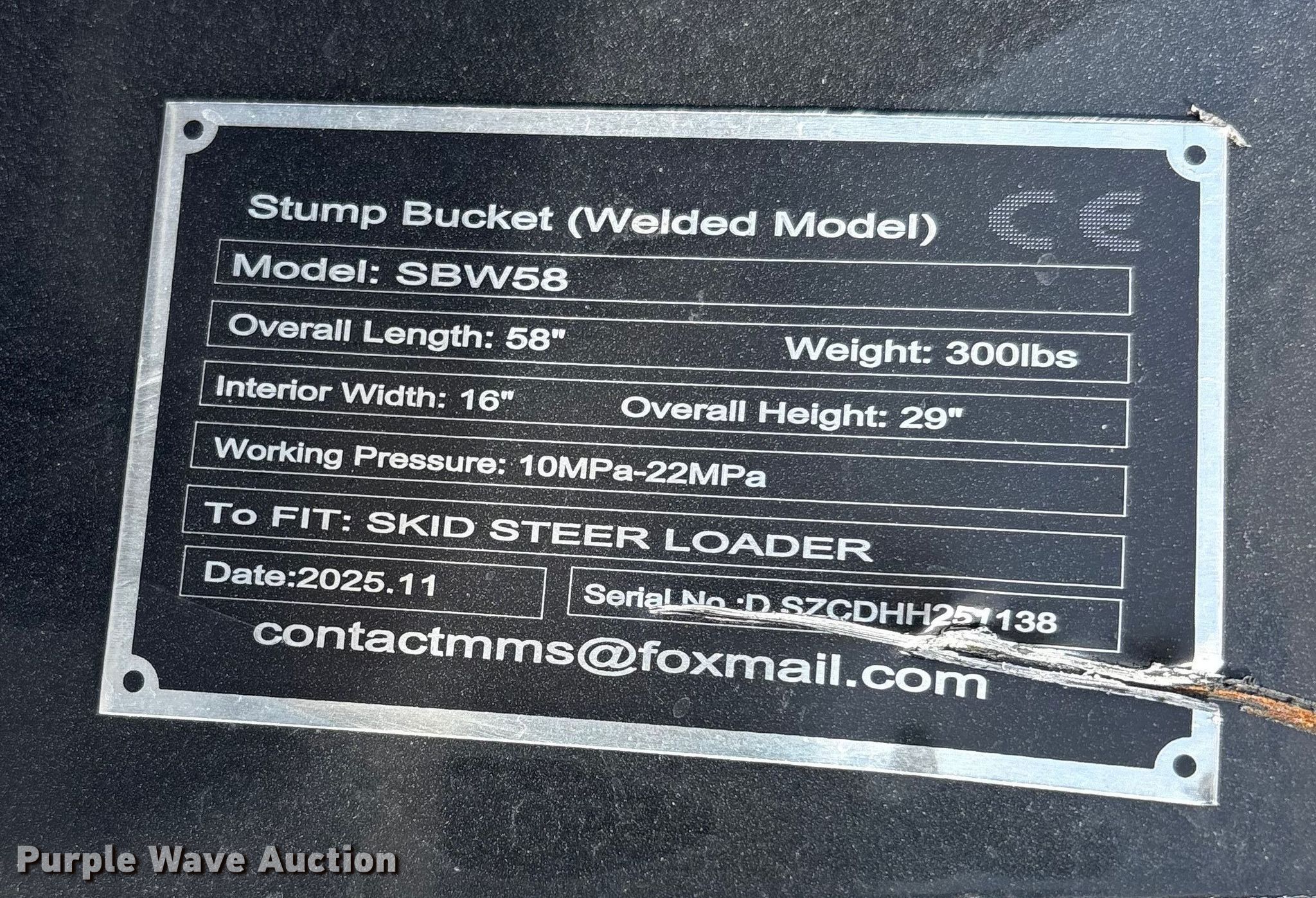 2025 Giyi SBW58 Skid steer stump bucket for sale in Waterloo, Nebraska. Item FG2684 will sell on February 26th, 2026.