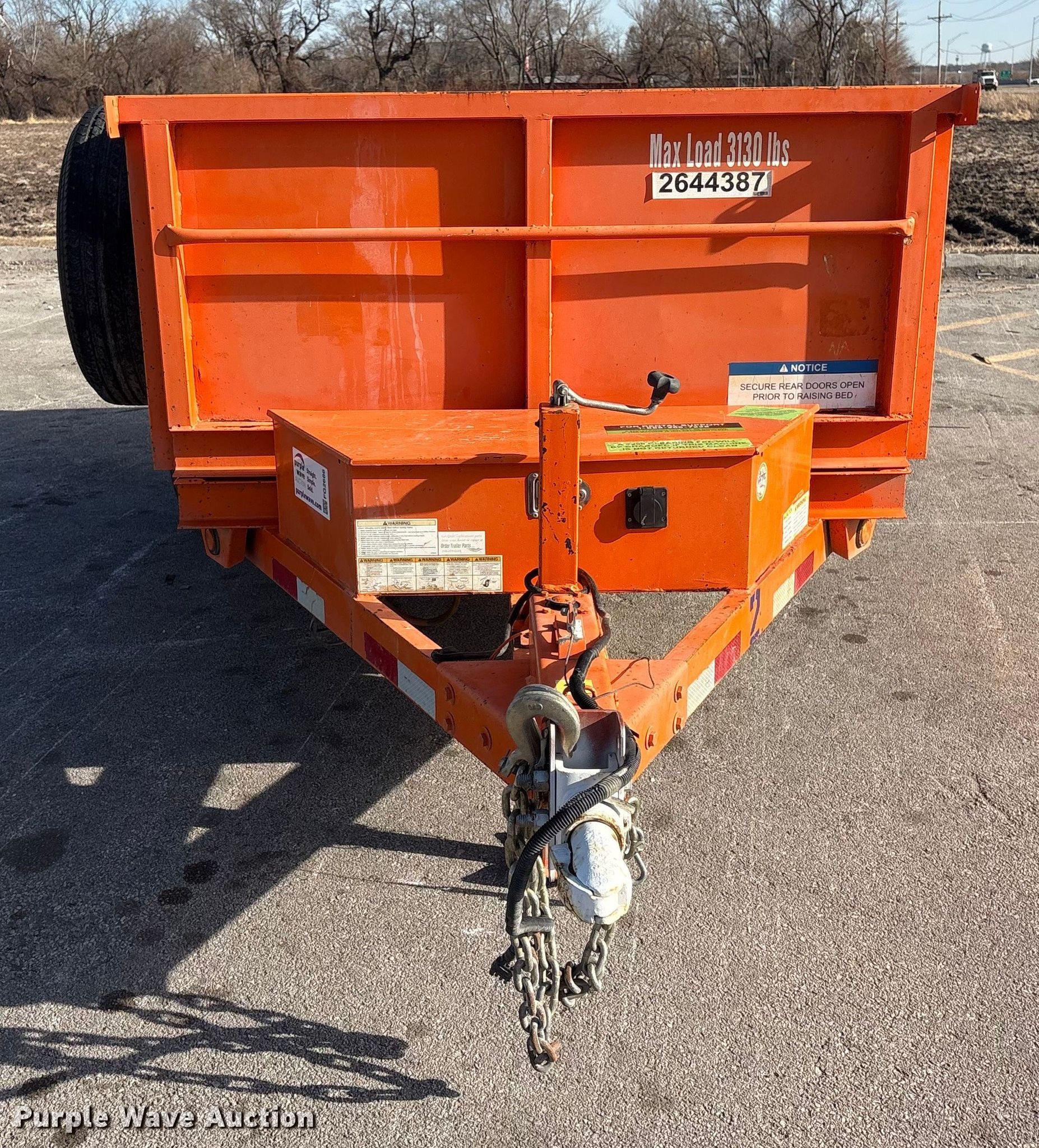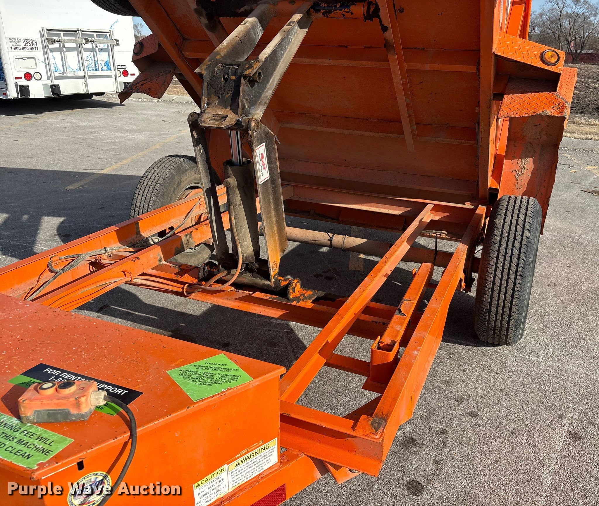 2018 Snake River DMP58-5KHD dump trailer. VIN: 5PTBD0816J1029260. Dimensions Overall Length: 13' 3", Width: 82", Body Length: 8', Width: 64", Side height: 25". Features Body type: Steel, Ram: Single, End gate: Manual, DLH battery charger and tester Model: D1208T-Rb, Buchner hydraulics pump. Chassis Ball hitch: 2", Landing gear: Single, Suspension: Spring, GVWR: 5,000 lbs, GAWR: 5,000 lbs. Tires Steel wheels, Size: 225/75R15. Transfer of ownership documentation will be a bill of sale which will be assigned and distributed by the seller. Jordan Truck and Equipment. Waterloo, NE 68069