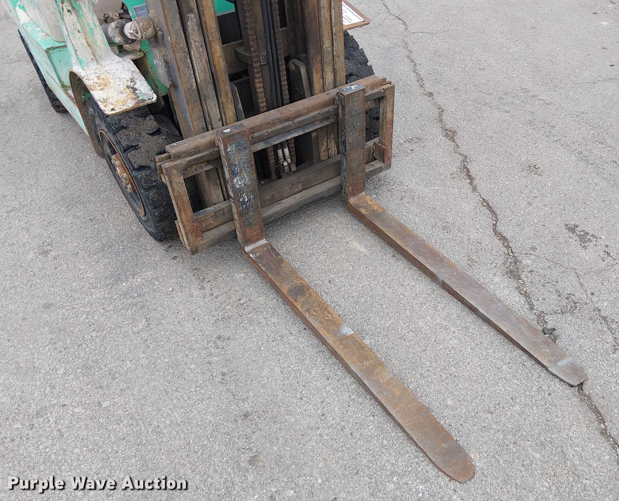 Purple Wave is selling a used Warehouse Forklift in Missouri. This item is a Mitsubishi FG25 forklift with the following: Hours: 10,784 on meter, Serial: AF17B-05420