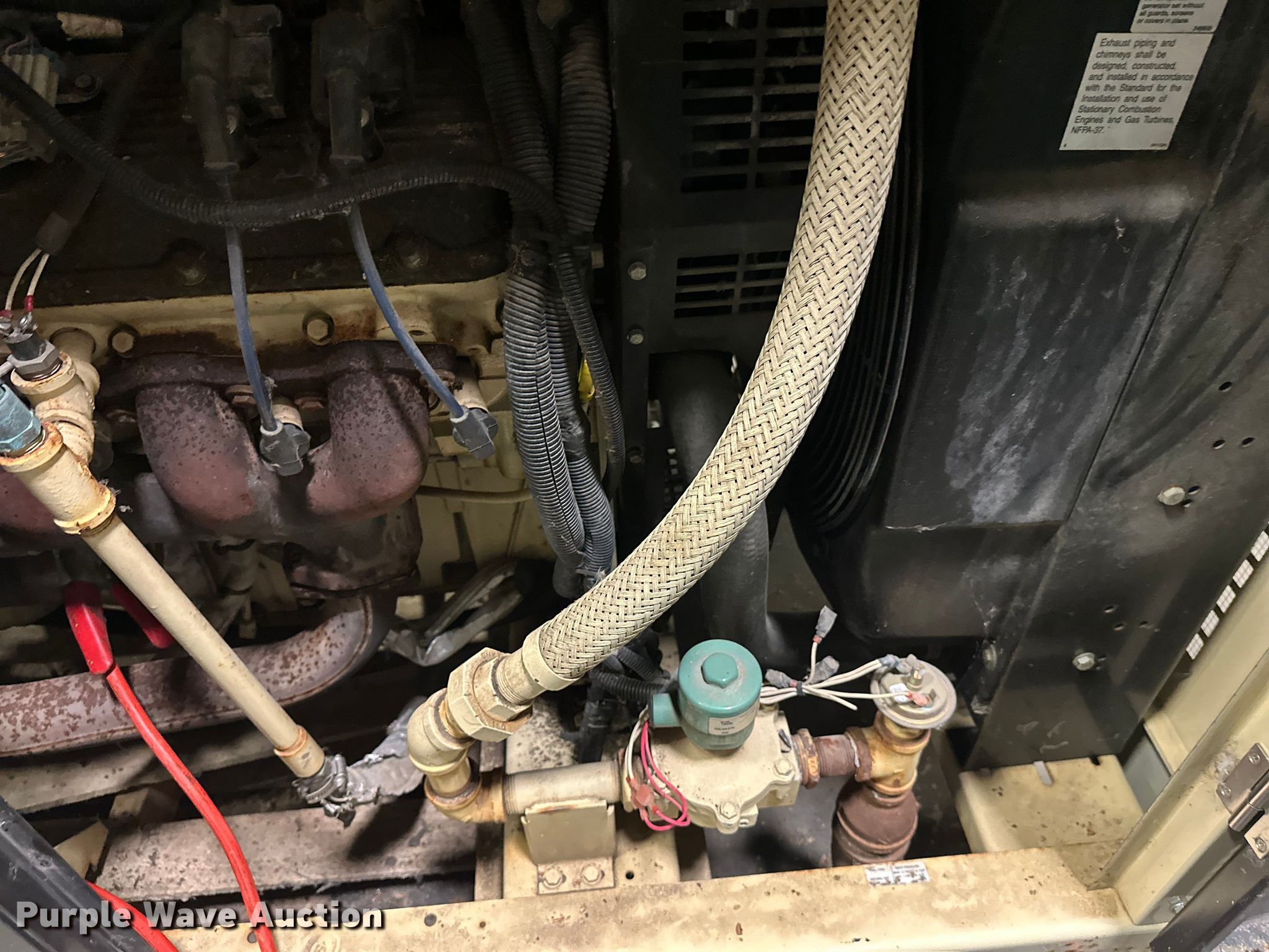 Kohler 80RGZ generator. Hours: 3,373 on meter. Engine GM, Displacement: 8.1L, Cylinders: 8, Fuel type: Natural gas. Features Generator Model: Kohler, kVA: 94, kW: 75, Electric start, Air compressor Skid mounted, 91" L x 35" W x 74" H. Total Energy Systems, Inc.. De Pere, WI 54115